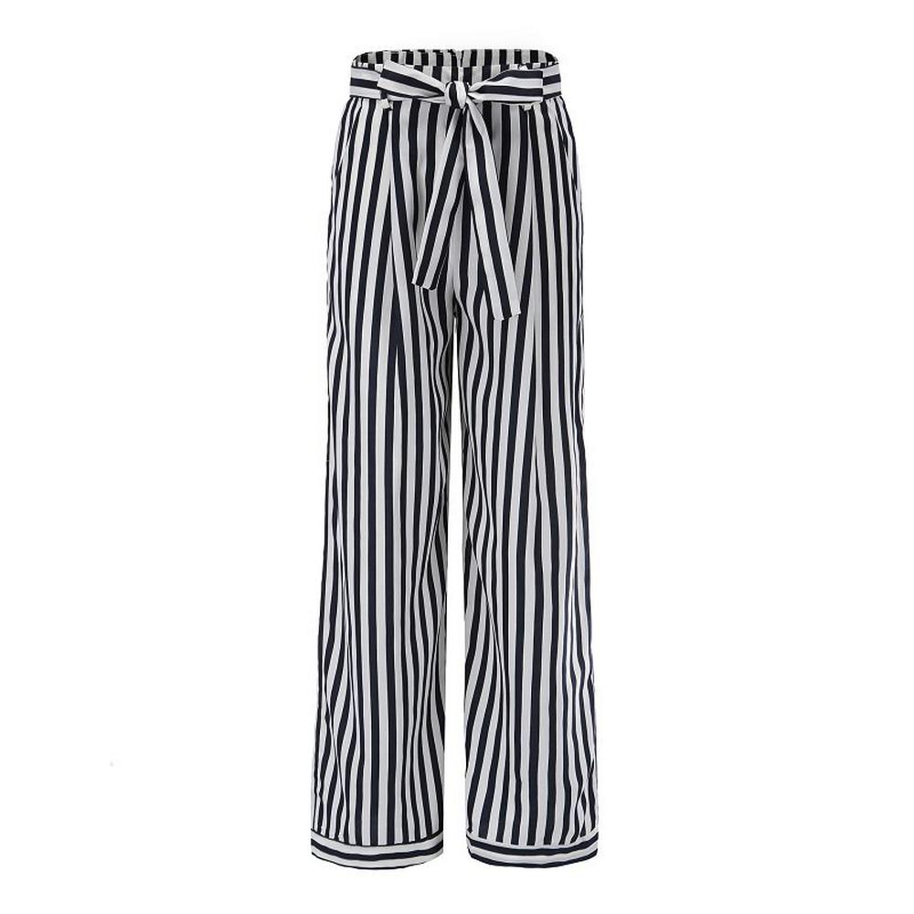 S/M/L/XL Size Stripe Pattern Straight Style High Waist Fashion Women Loose Comfortable Bandage Wide-Leg Pants