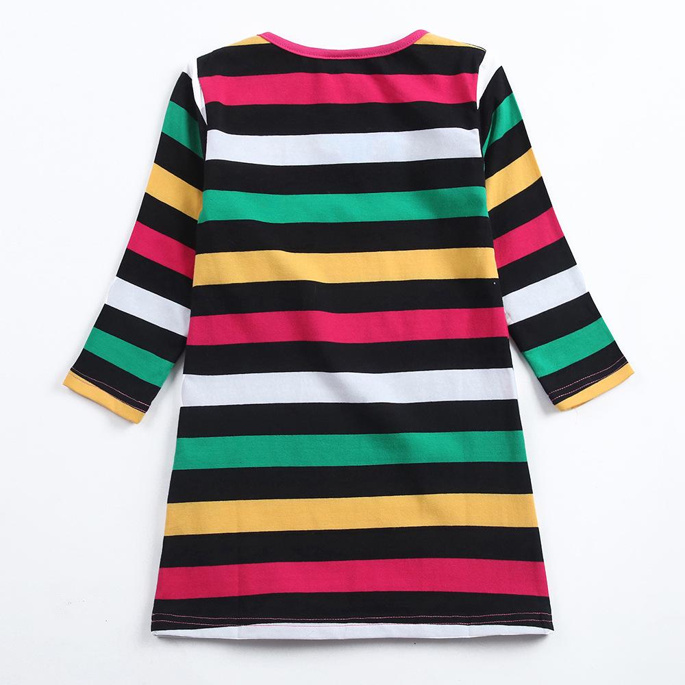 Soft Cotton Dress Butterfly Stripes Toddler Casual Dress Girls Long Sleeve Dresses Beautiful Butterfly Embroidered Colorful Stripes AL6462