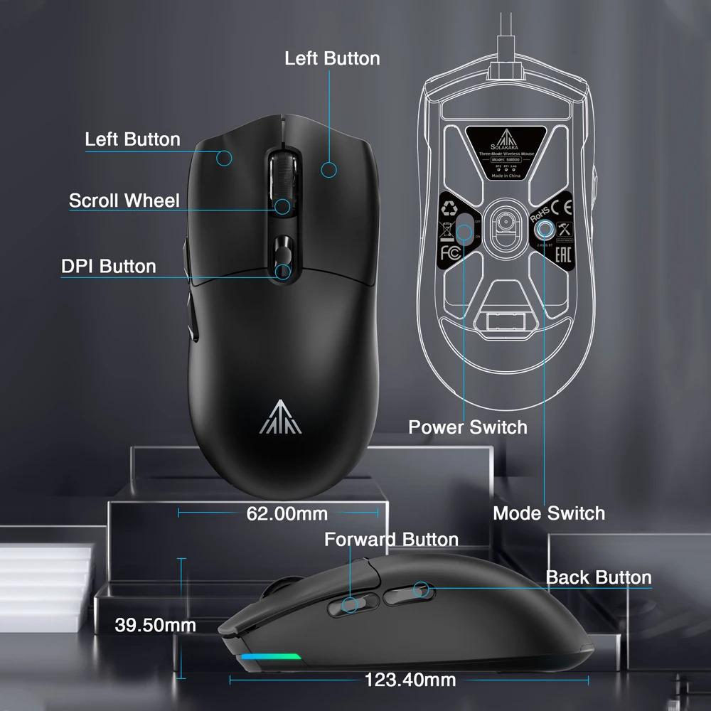 SM800 Gaming Mice adopts advanced 2.4G wireless and Bluetooth 5.0 transmission technology. Users can save 3 devices,fast response and easy switching.It's compatible with your PC/Laptop/Macbook/Mobile Phones.