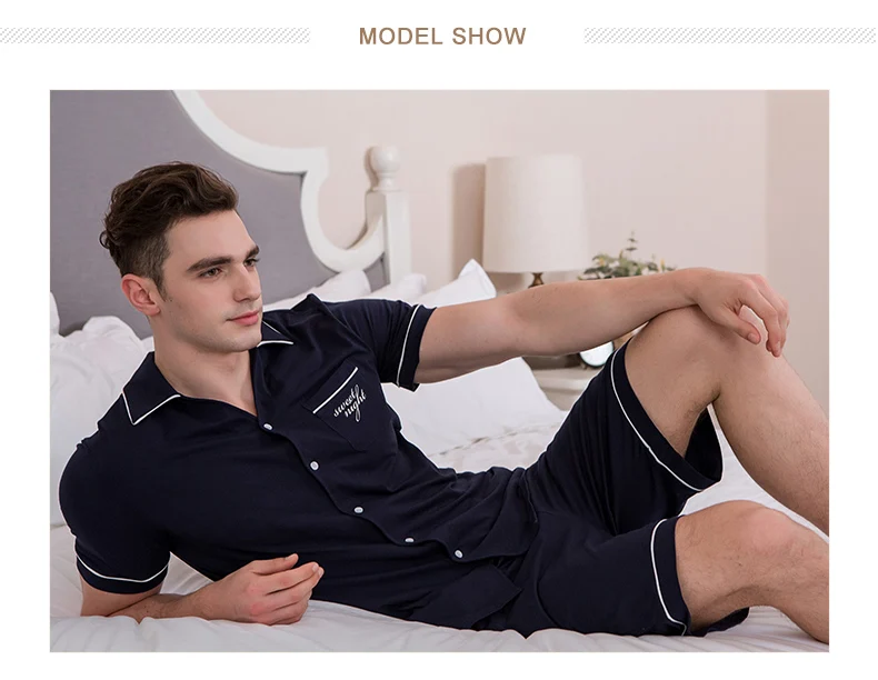 Solid Color Bamboo Cotton Tops + Trousers Men's Pajamas Sleepwear Homewear Pajama Loungewear Underwear