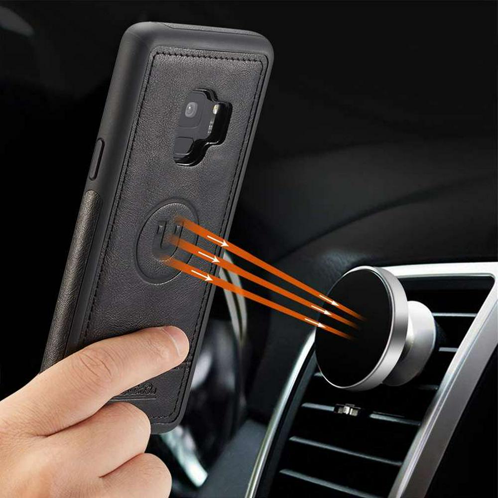 Solid Color Genuine Leather + Detachable Car Hold PC Card Slots with Stand and Wallet Cover Case for Samsung Galaxy S10E