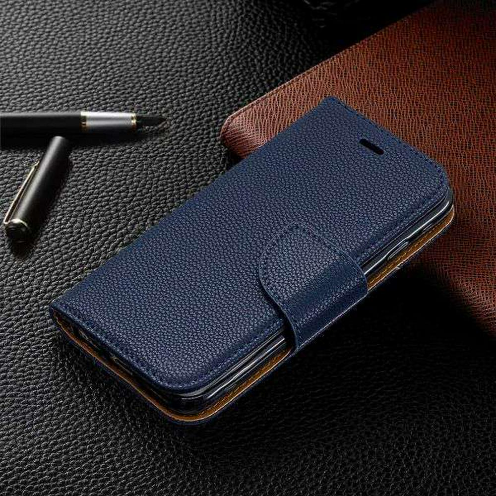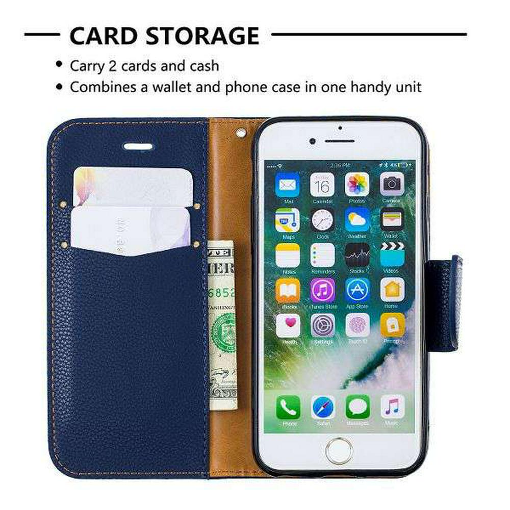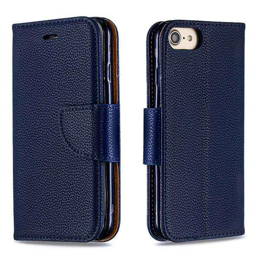 Solid Color Litchi Pattern Wrist Strap Shockproof Side Flip PU Leather + Soft TPU Stand with Magnetic Buckle and Card Slots Wallet Case for iPhone 7 / 8