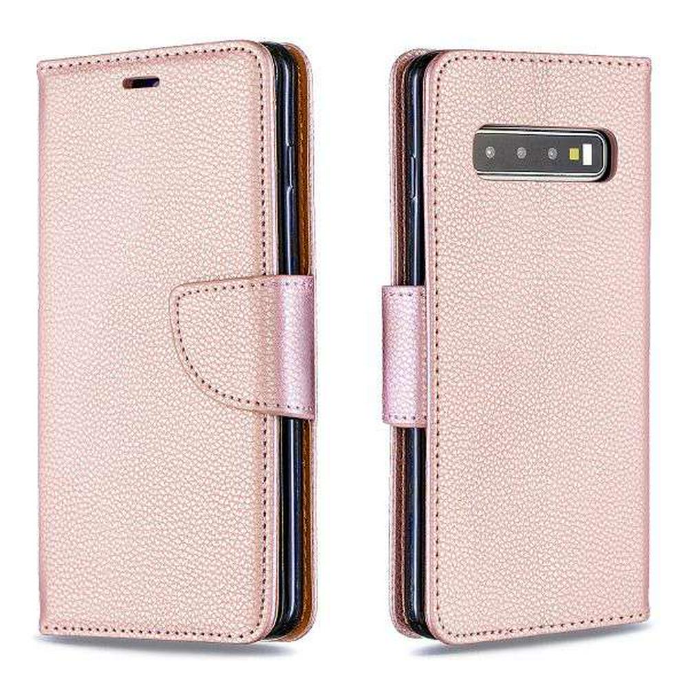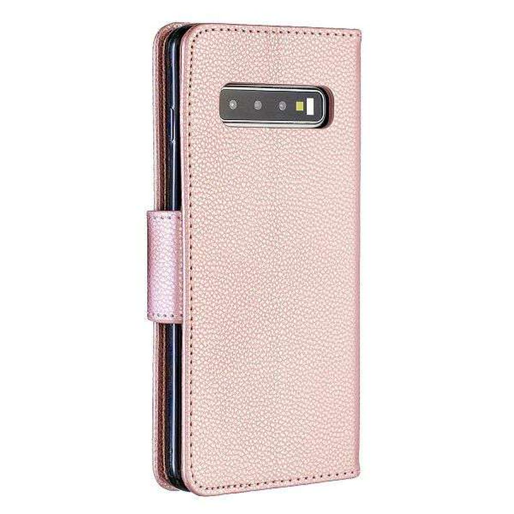 Solid Color Litchi Pattern Wrist Strap Shockproof Side Flip PU Leather + Soft TPU Stand with Magnetic Buckle and Card Slots Wallet Case for Samsung Galaxy S10