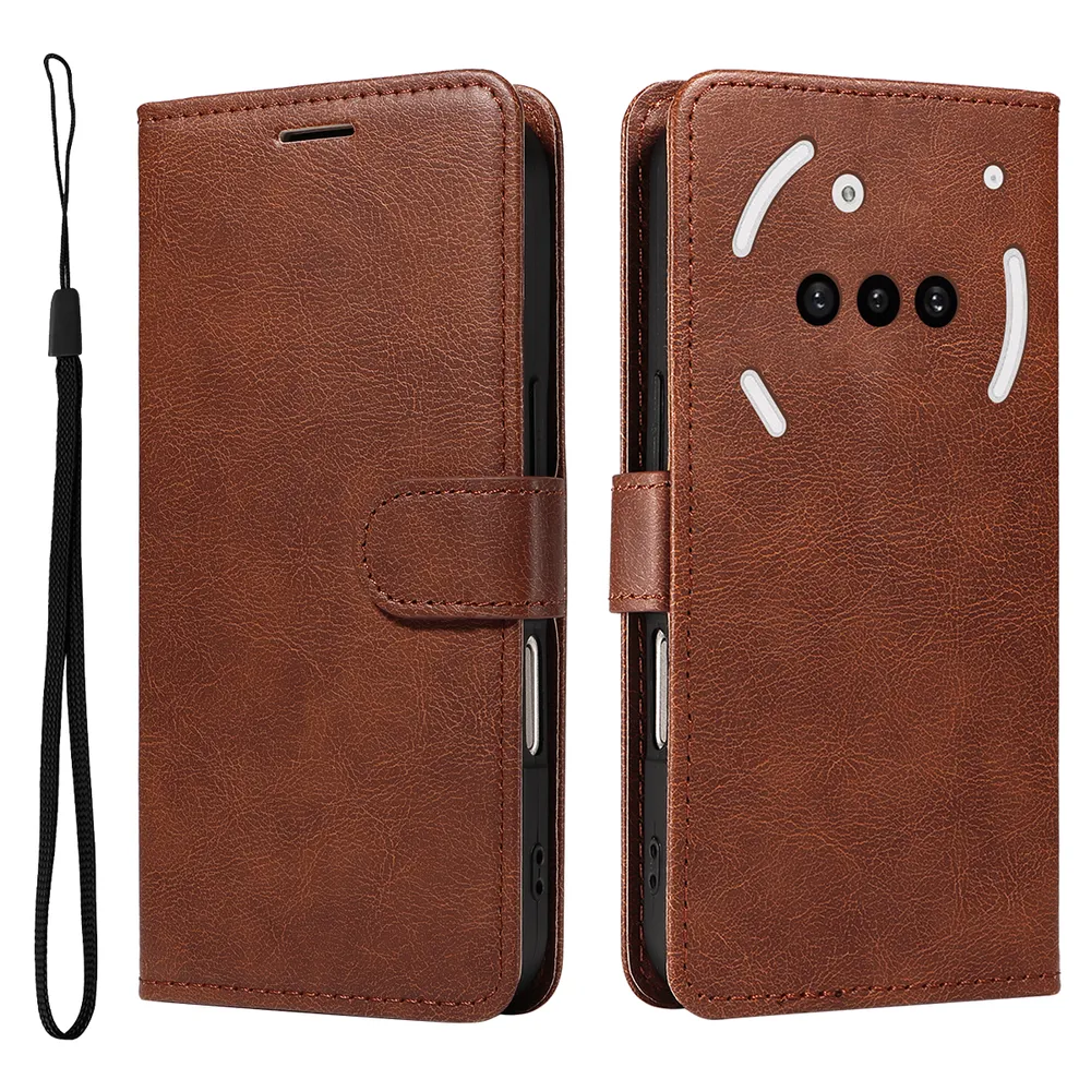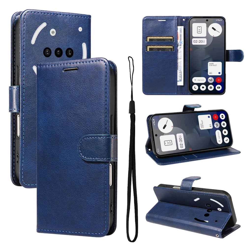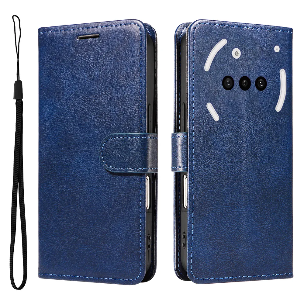Solid Color Pattern Scratch Resistant Clamshell PU Leather Phone Protective Case with Lanyard&Card Slots for Nothing phone 3A