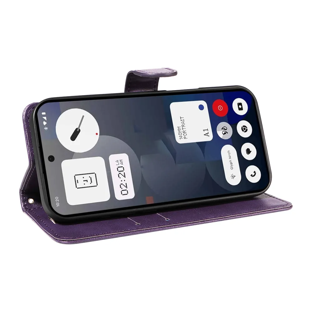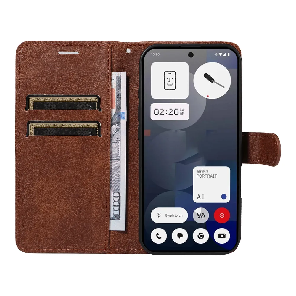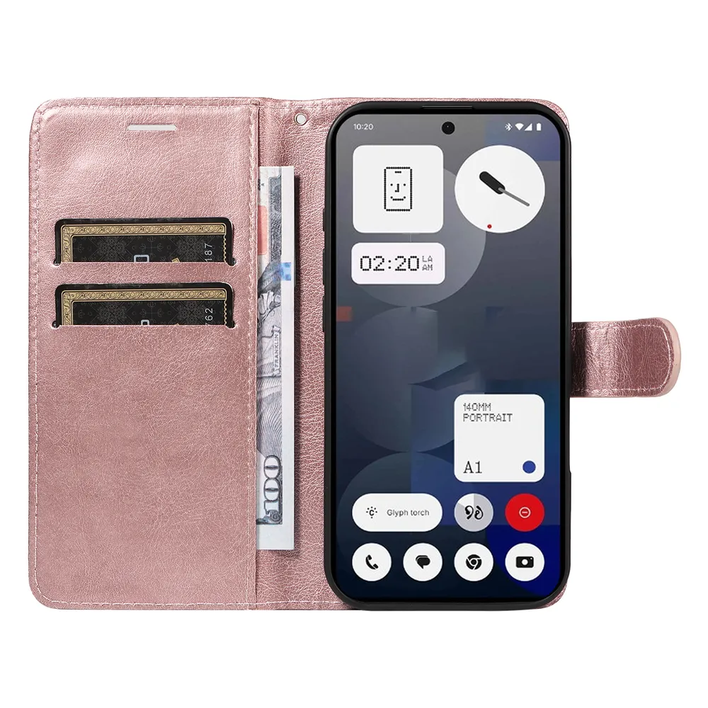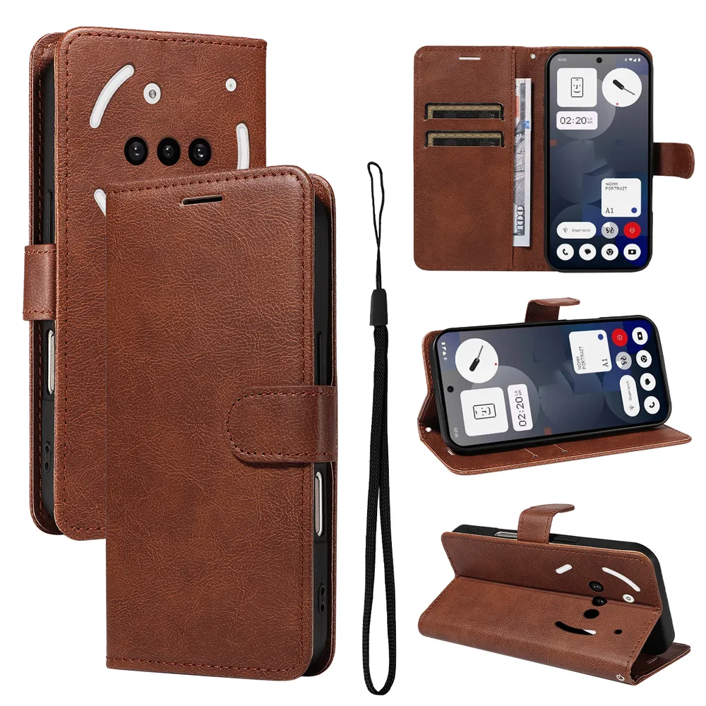 Solid Color Pattern Scratch Resistant Clamshell PU Leather Phone Protective Case with Lanyard&Card Slots for Nothing phone 3A