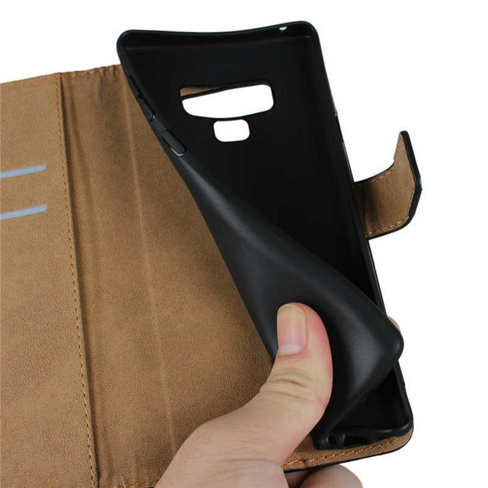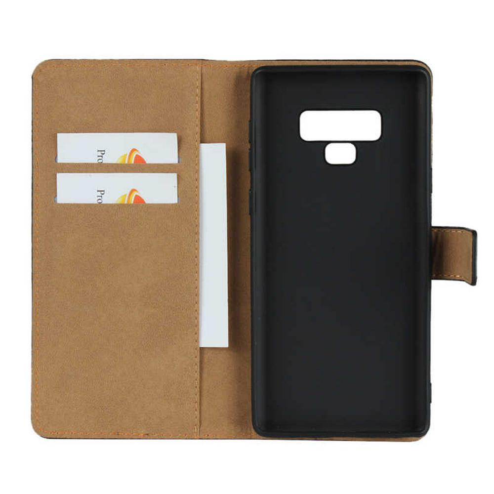 Solid Color Shockproof Anti-Scratch Side Flip Genuine Leather + Soft TPU Card Slots with Magnetic Buckle and Stand Wallet Protective Case for Samsung Galaxy Note 9