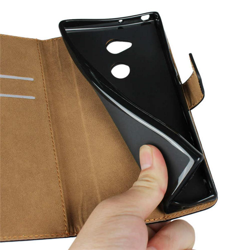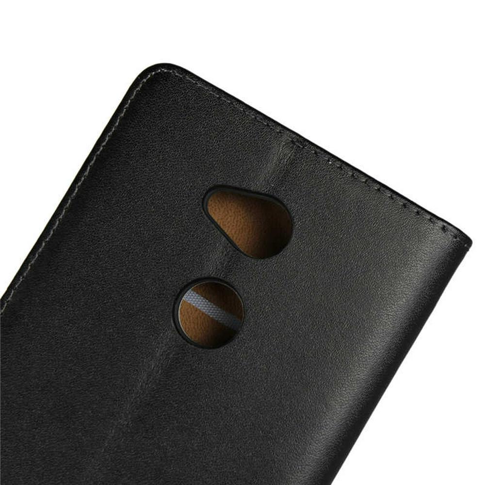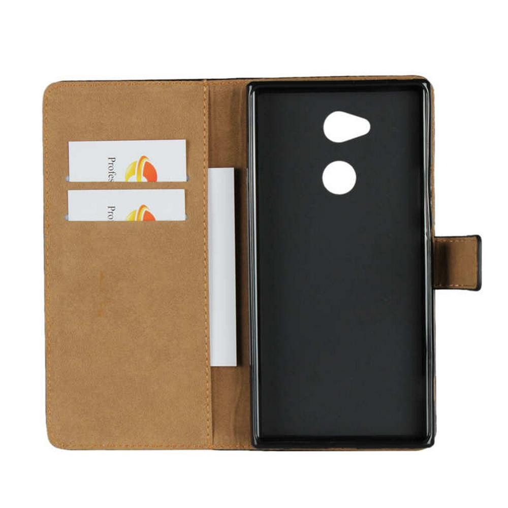Solid Color Shockproof Anti-Scratch Side Flip Genuine Leather + Soft TPU Card Slots with Magnetic Buckle and Stand Wallet Protective Case for Sony Xperia XA2 Ultra