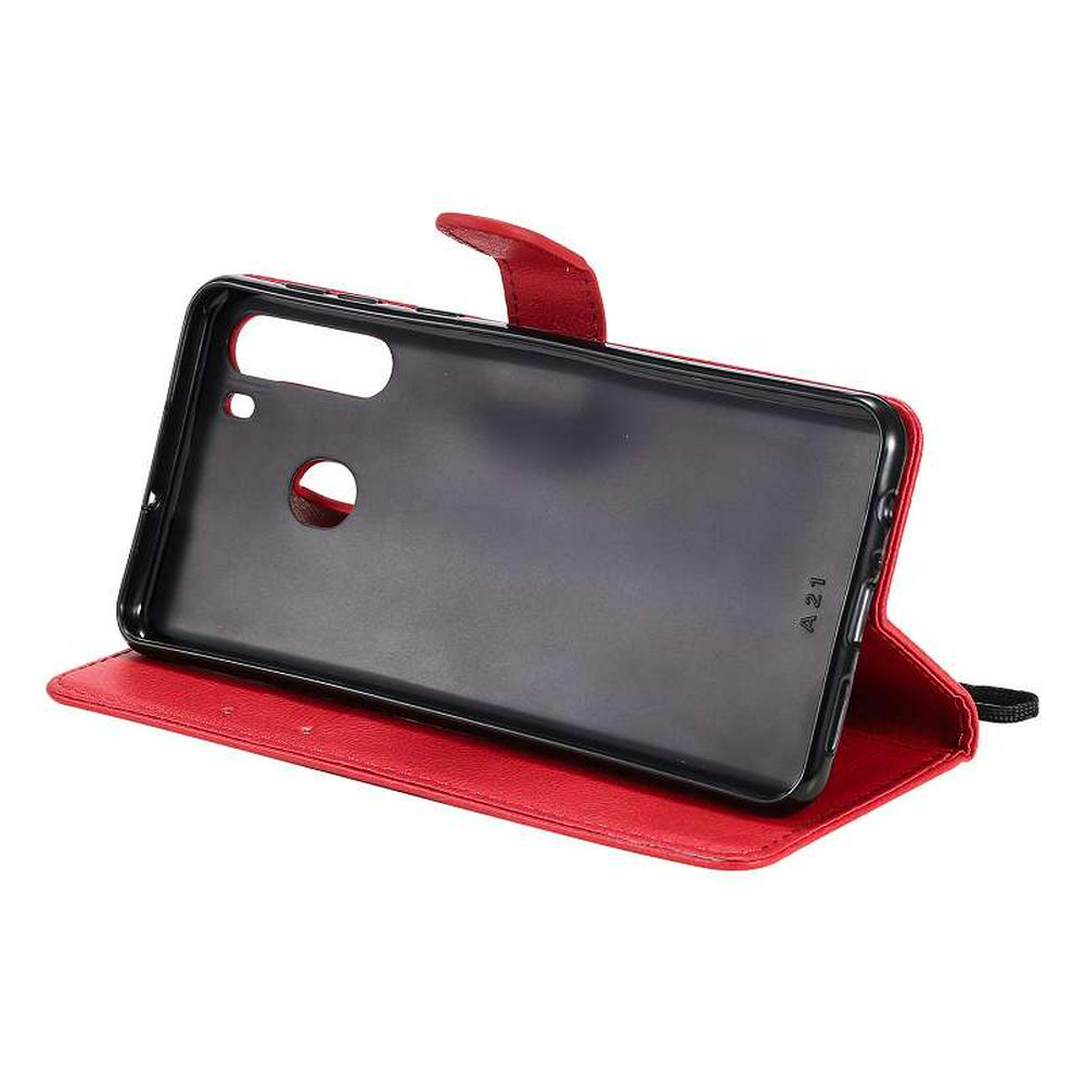 Solid Color Wrist Strap Style Shockproof Side Flip PU Leather + Soft TPU Card Slots with Magnetic Buckle and Stand Wallet Case for Samsung Galaxy A21