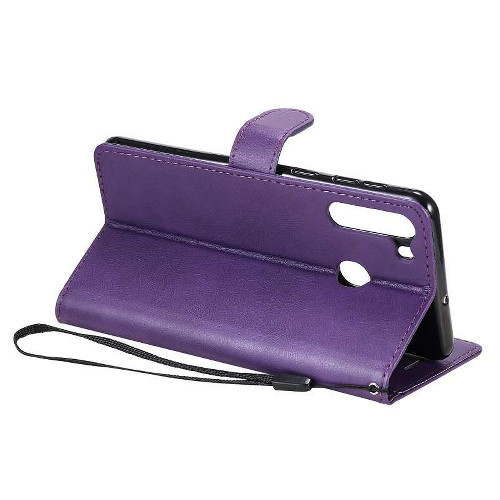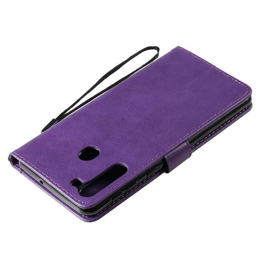 Solid Color Wrist Strap Style Shockproof Side Flip PU Leather + Soft TPU Card Slots with Magnetic Buckle and Stand Wallet Case for Samsung Galaxy A21