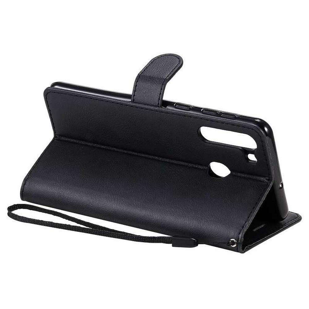 Solid Color Wrist Strap Style Shockproof Side Flip PU Leather + Soft TPU Card Slots with Magnetic Buckle and Stand Wallet Case for Samsung Galaxy A21