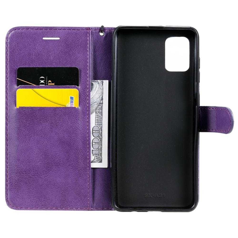 Solid Color Wrist Strap Style Shockproof Side Flip PU Leather + Soft TPU Card Slots with Stand and Magnetic Buckle Wallet Case for Samsung Galaxy A31