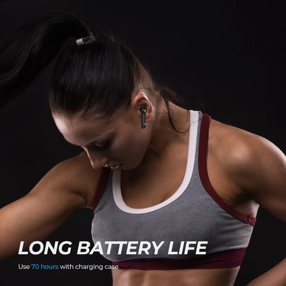 A single charge gives you around 3.5 hours playtime. 2600mAH large capacity charging case supports another 20 times full charge and works as a mobile power bank in emergency.