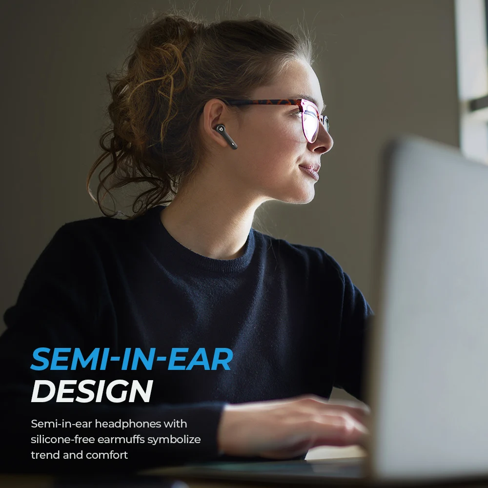 With achieving a balance between comfort and snug-fit, the semi-in-ear design eliminates any discomfort even with long time wearing and optimize your experience with sensitive touch control.