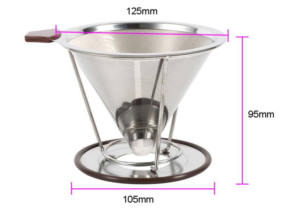 Coffee filter dripper made of high quality 304 stainless steel material, non-toxic, safe and durable to use.