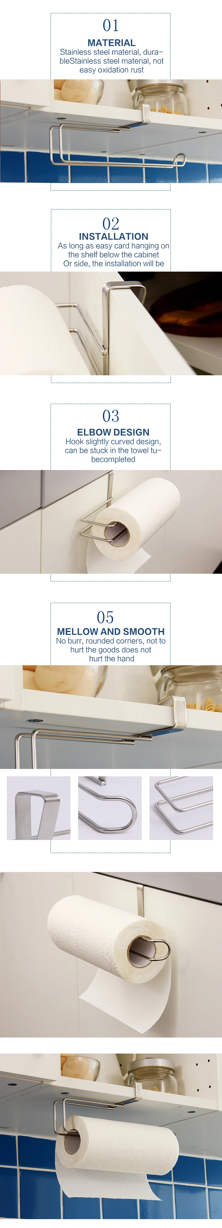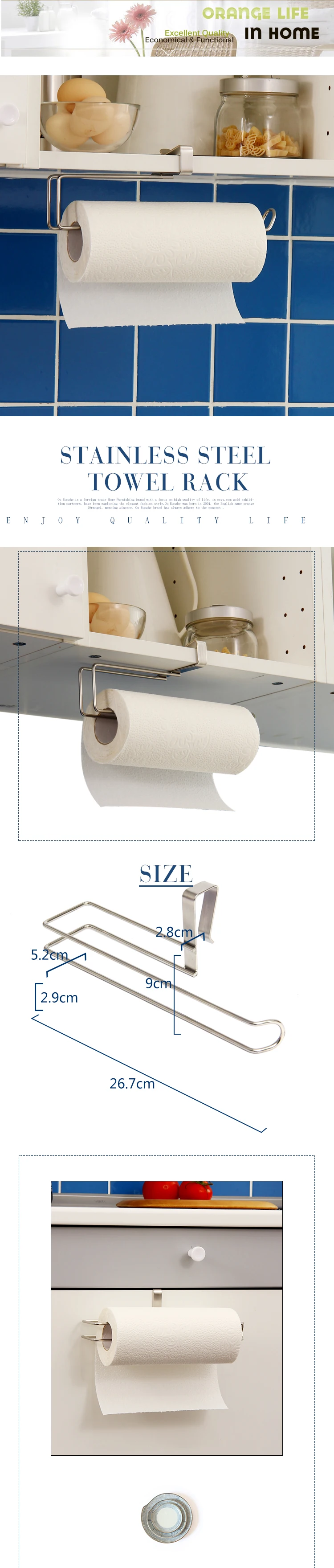 Stainless Steel Kitchen Bathroom Toilet Sink Door Free Punch Paper Tissue Roll Towel Hanging Rack