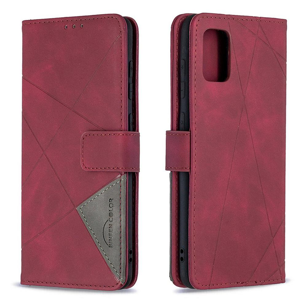 Stitching Color Rhombus Pattern BF05 Scratch Resistant PU Leather Phone Protective Case with Stand &Card Slots for Samsung Galaxy A31