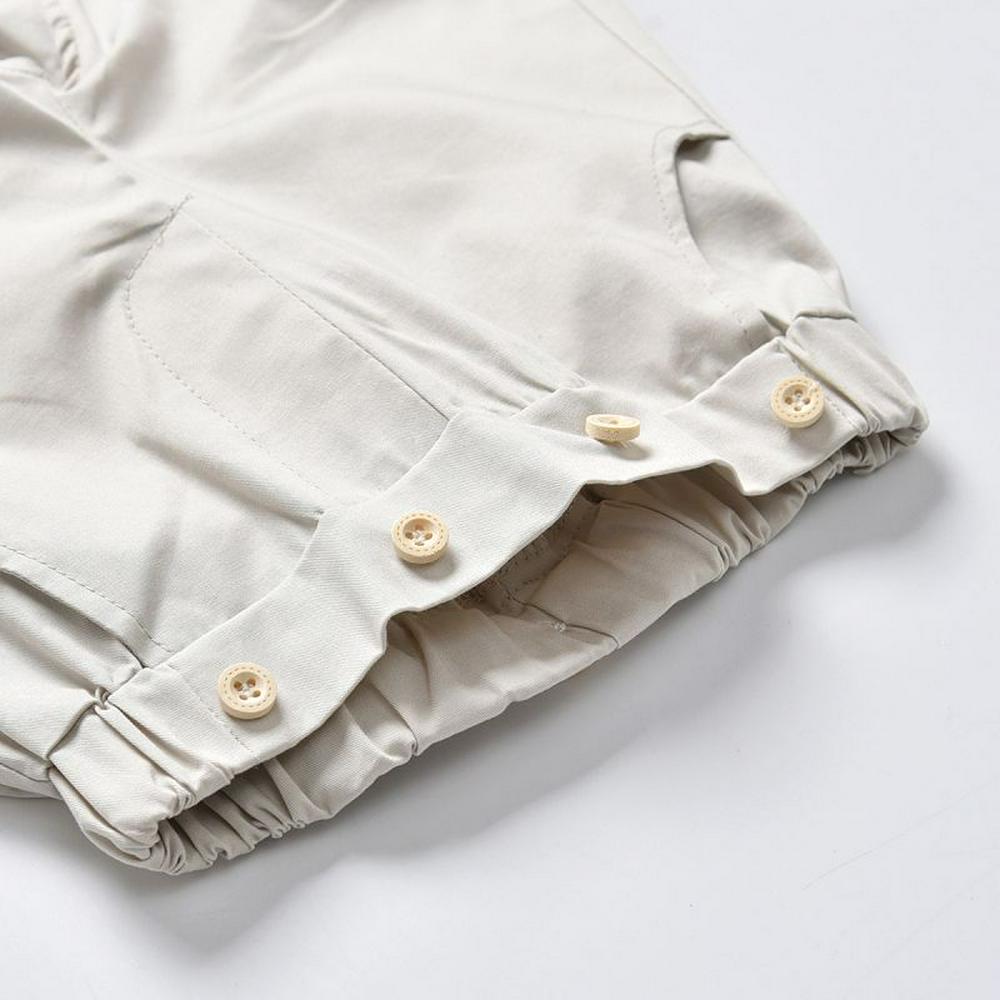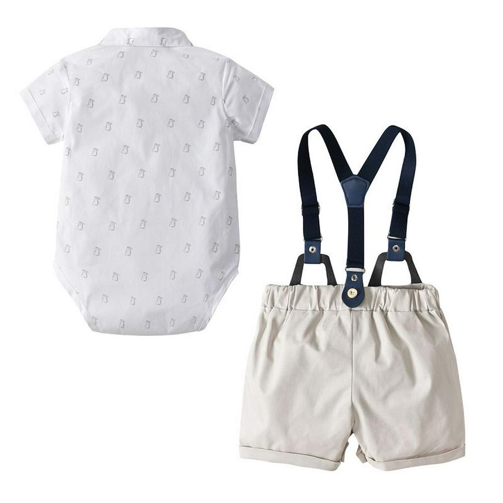 Summer Gentleman Style Children Baby Boys Print Dinosaur Short Sleeves Button Bow Tie T-Shirt Sling Shorts Children Wear Four Pieces Set