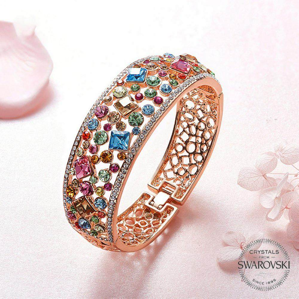 Specification:1. Inner diameter: 2.28 inches. 2. Weight: 30 g. 3. Main Stone: Swarovski Crystals. 4.Metal Type: Eco-friendly Gold Plated Alloy.