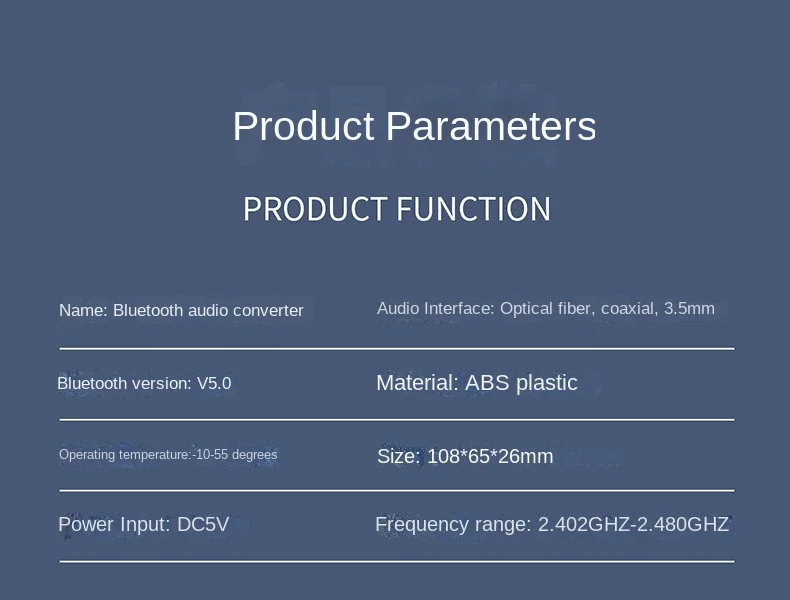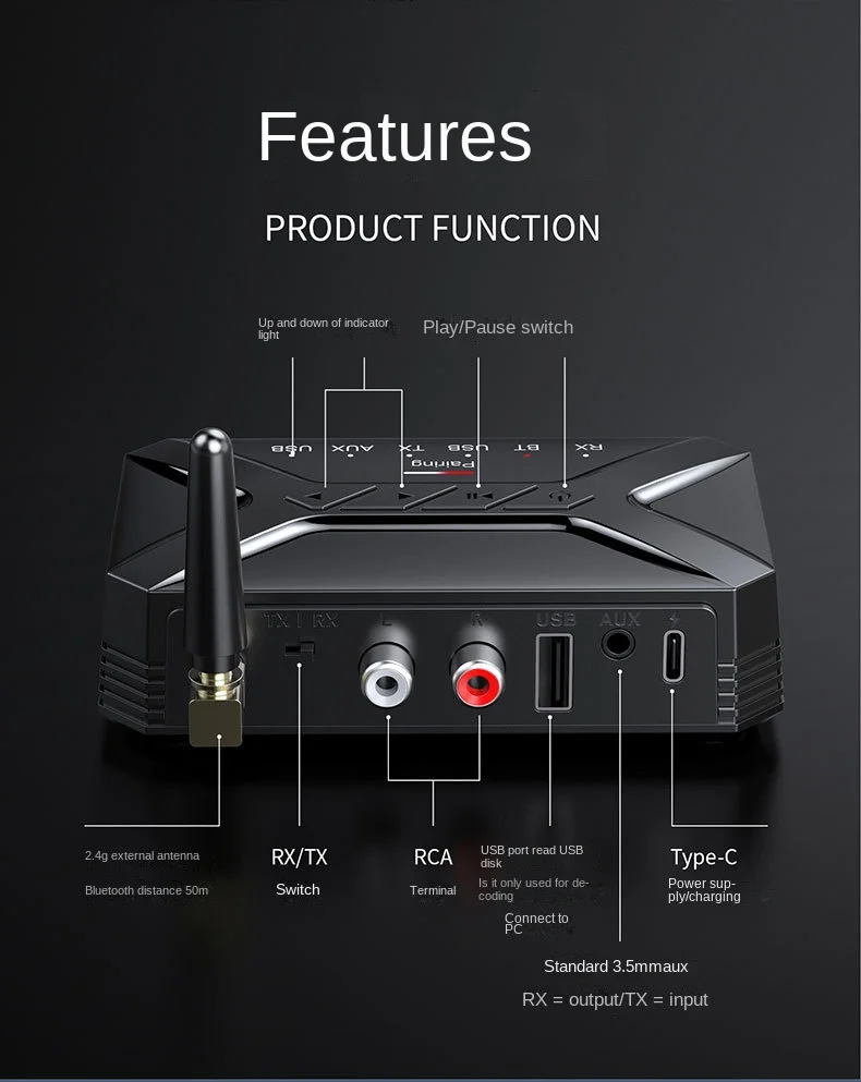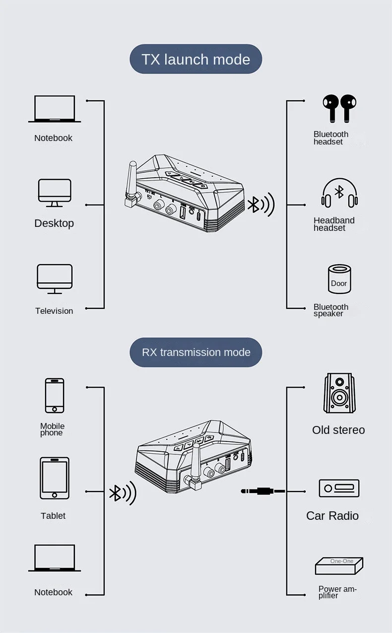 Suitable type: computer, TV, projector (transmission mode) / speaker, headphones (reception mode)