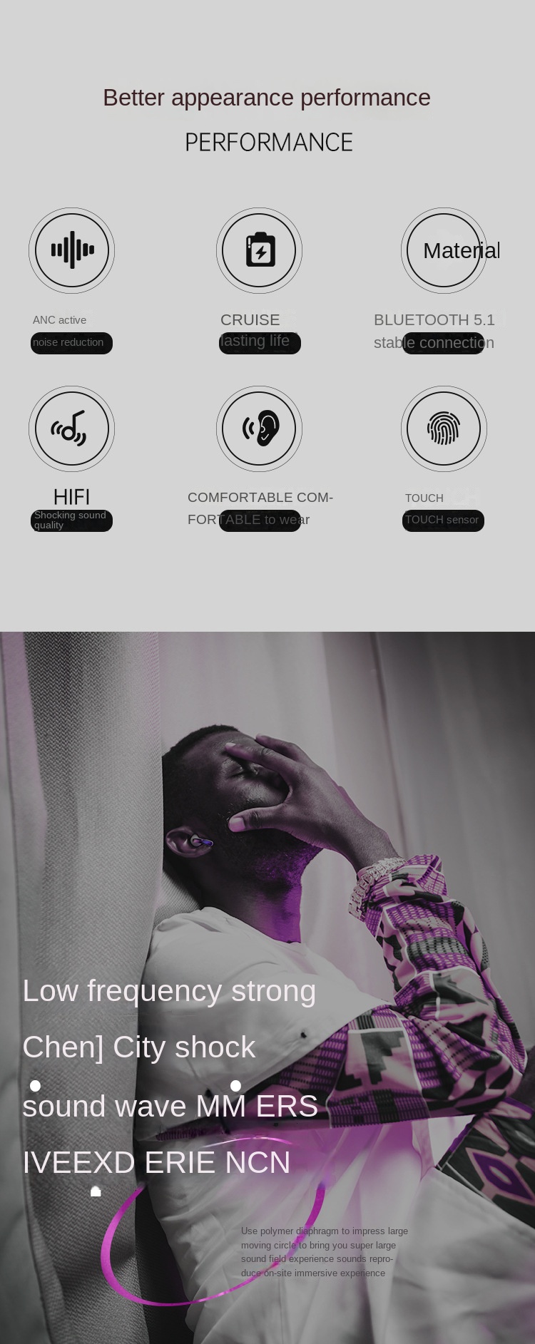 1. Upgrade Bluetooth version 5.1, adopt dual transmission technology, without delay, and transmit signals simultaneously on both sides;
