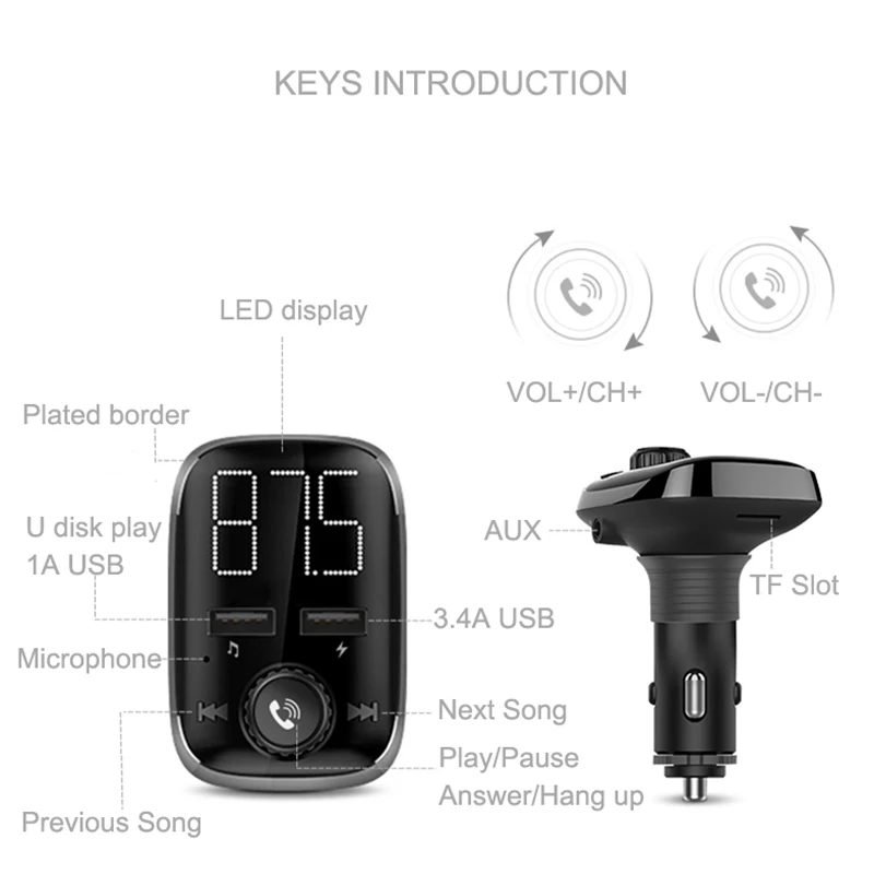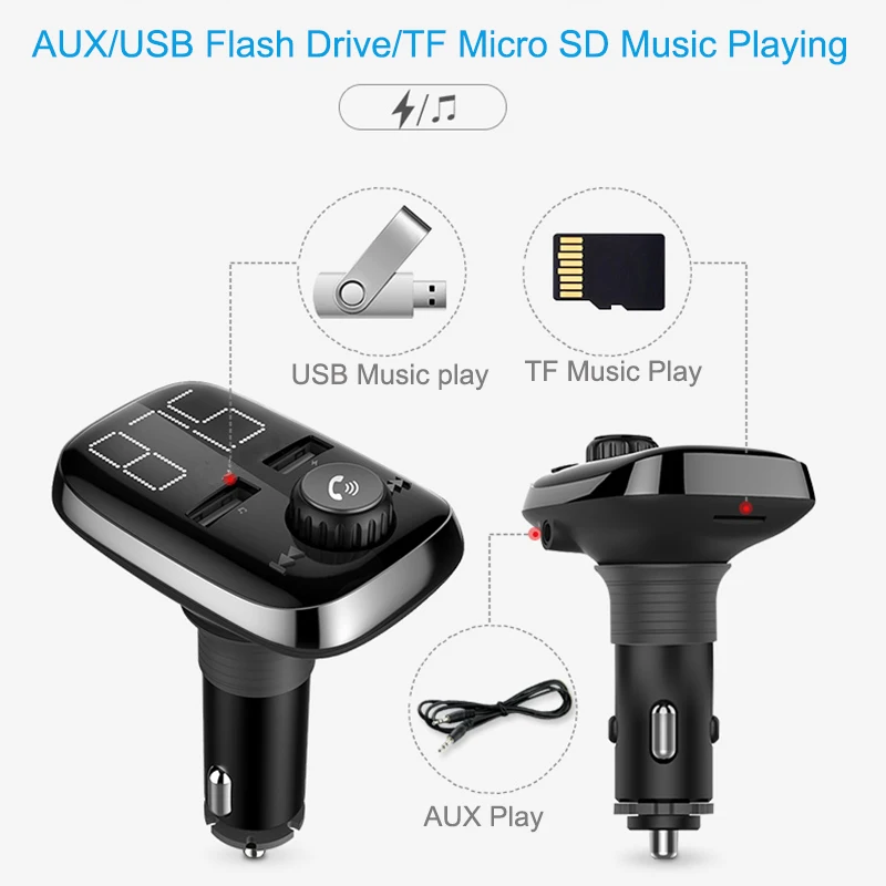 AUX FM listening to the song, via the audio cable, the AUX hole of the machine and the 3.5mm headphone jack of the mobile phone, adjust the FM frequency of the machine and the FM frequency of the car, the mobile phone music is transmitted to the car audio.