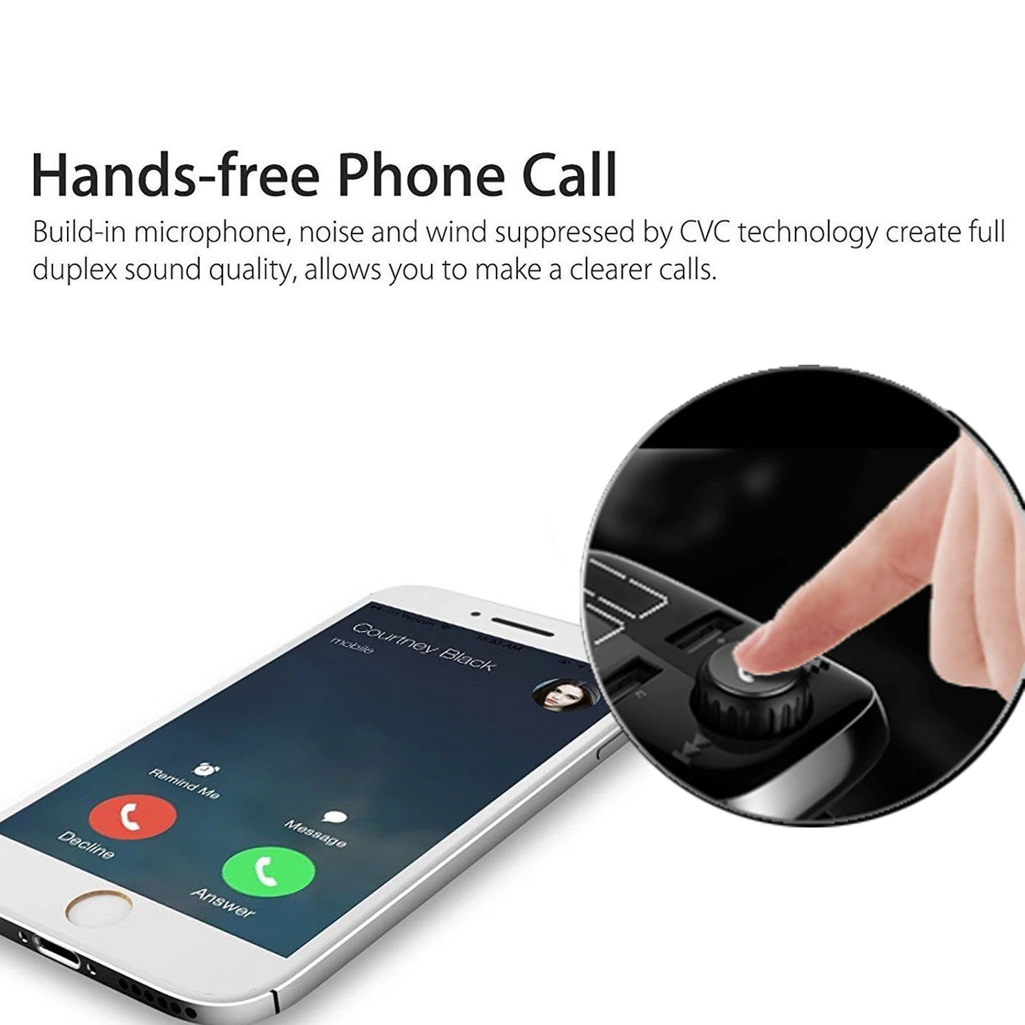 Hands-free calling by car, ringing of incoming calls, automatic report, automatic pause of music, hands-free calling via car audio