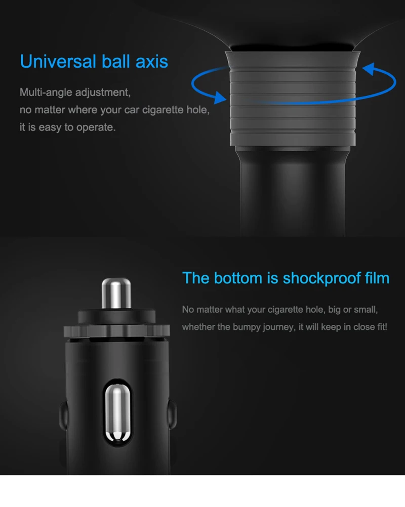 Dual USB charging, 2.4A + 1A USB charging