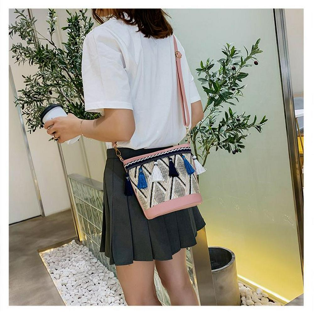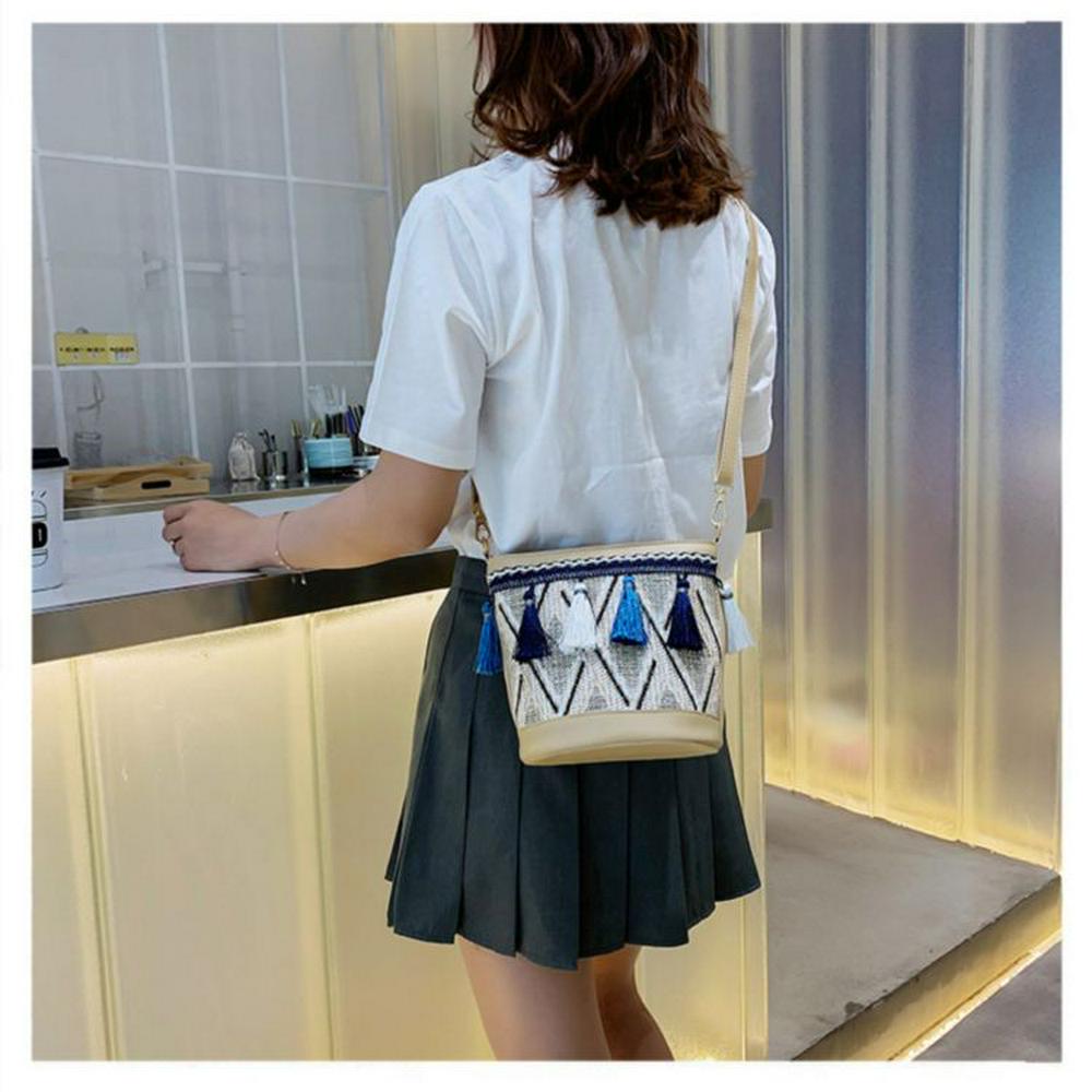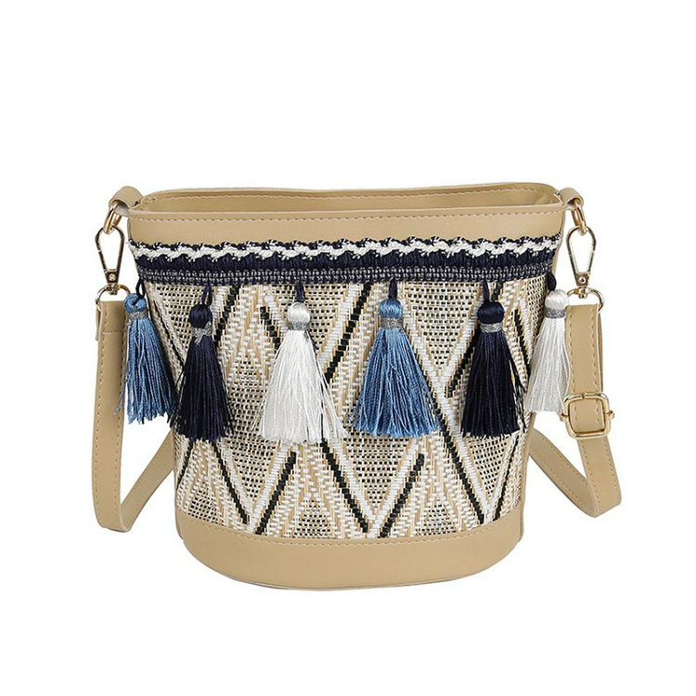Tassel Ethnic Beach Straw Bag Embroidery Bucket Wild Match Messenger Bag Women Bags