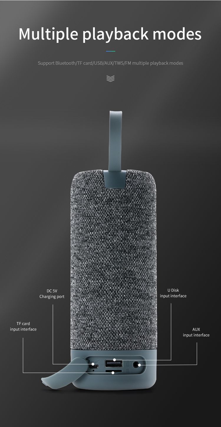 12.Function: portable, Bluetooth function, support FM radio, USB, TF card, AUX playback, call function, TWS