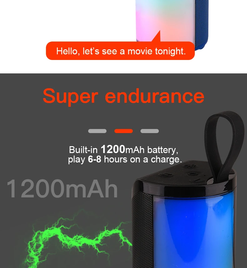 TG169 LED Portable bluetooth Speaker Outdoor Waterproof Subwoofer 3D Stereo Mini wireless Loudspeaker Support AUX FM TF card