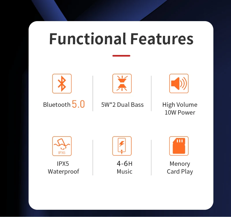 Support Bluetooth, FM, TF card, USB playback, audio input, Bluetooth call hands-free one-button answer, TWS