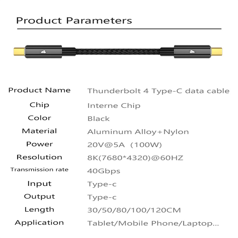 USB4 Cable, which provides 40Gbps transfer rate and 100W charging rate. Safe and reliable product that will not damage your device