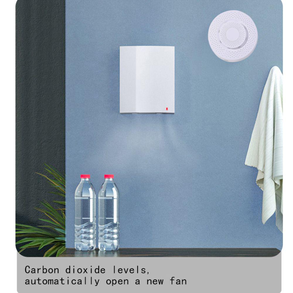 Intelligent linkage, when the indoor environment is abnormal, a linkage alarm can be triggered, and home appliances such as air conditioners, fresh fans, air purifiers, humidifiers, etc. can be turned on to optimize the environment.