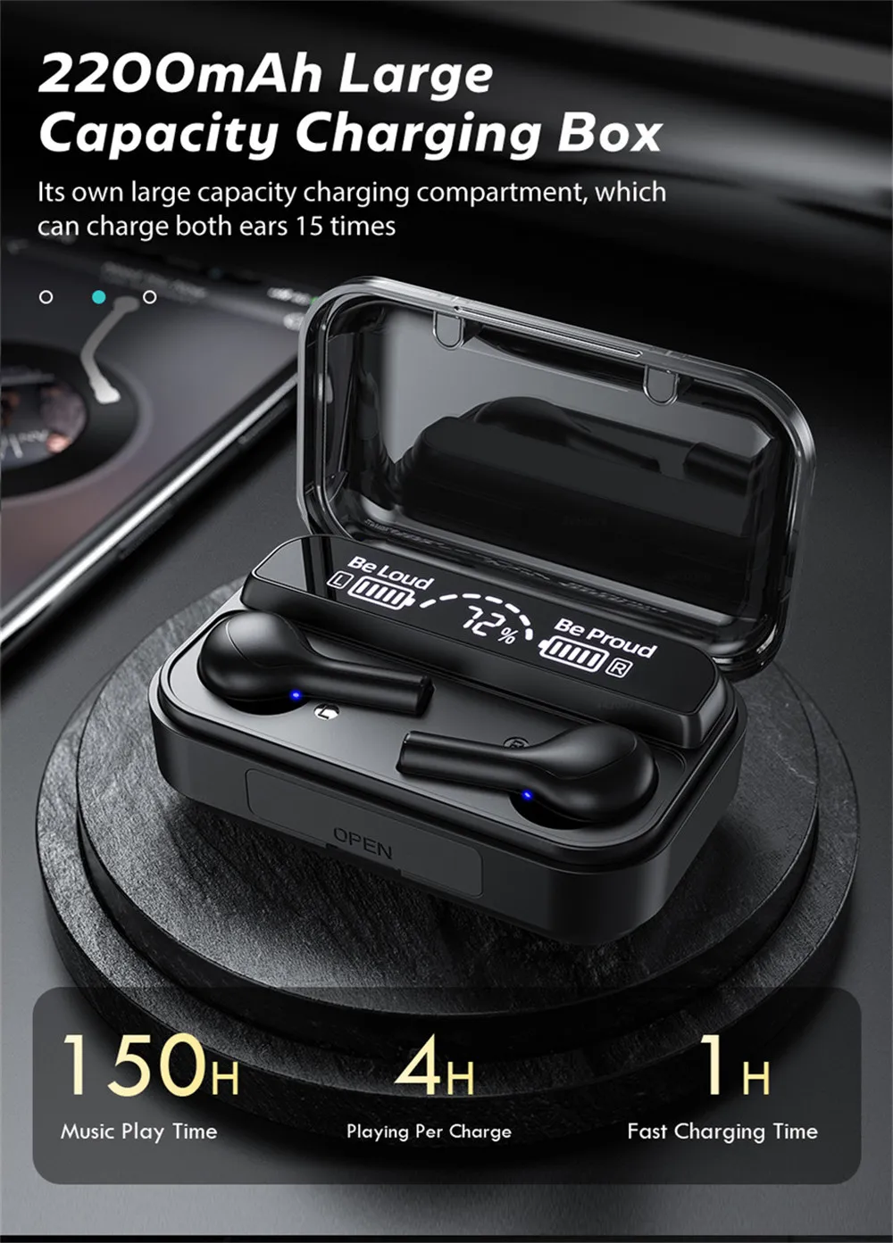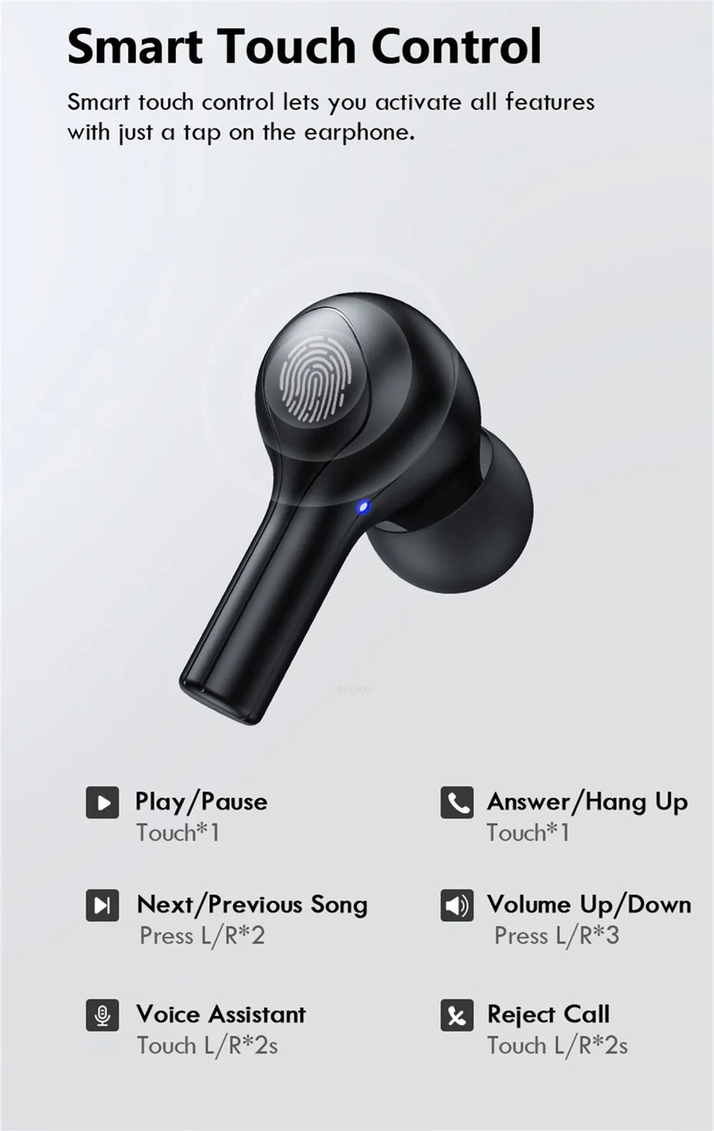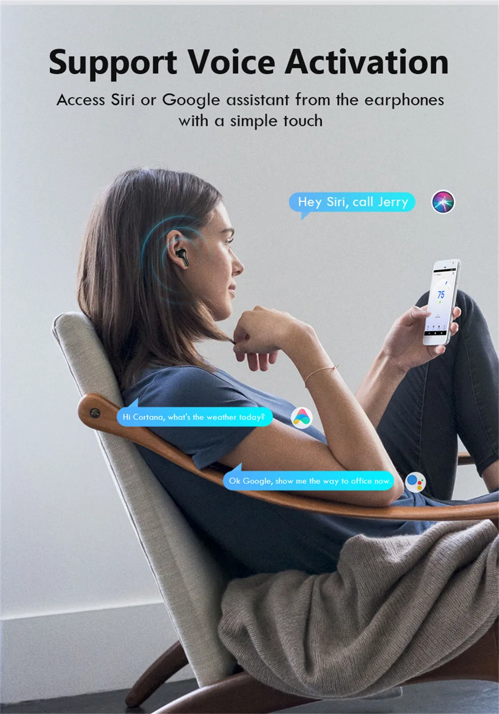 5.Popular touch control function, support switch songs,Volume, phone call and call voice assiatant.