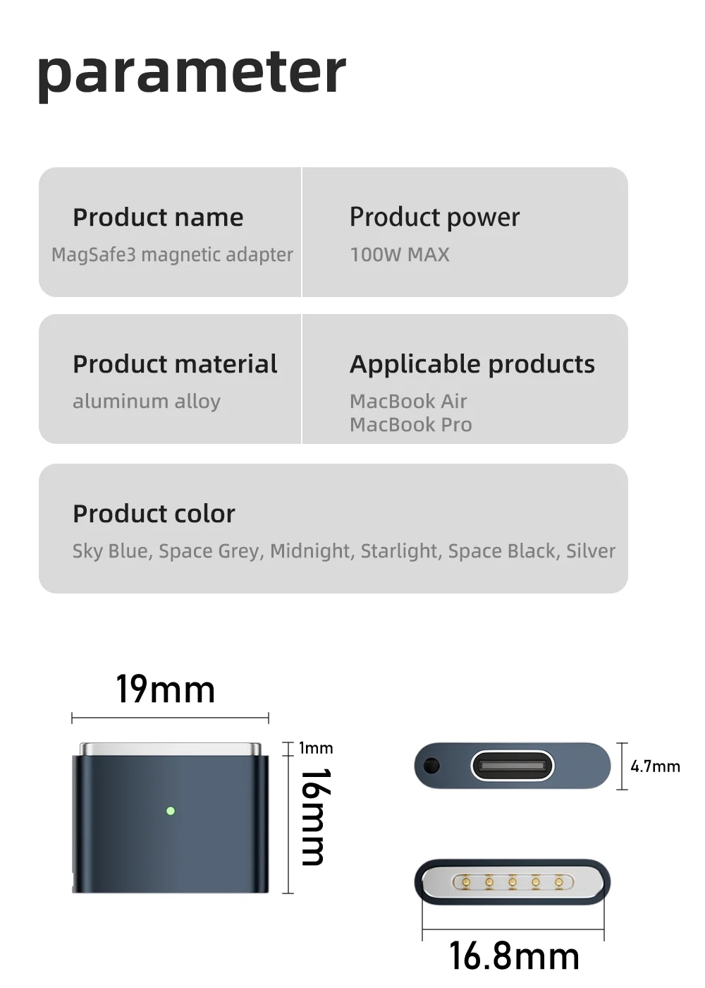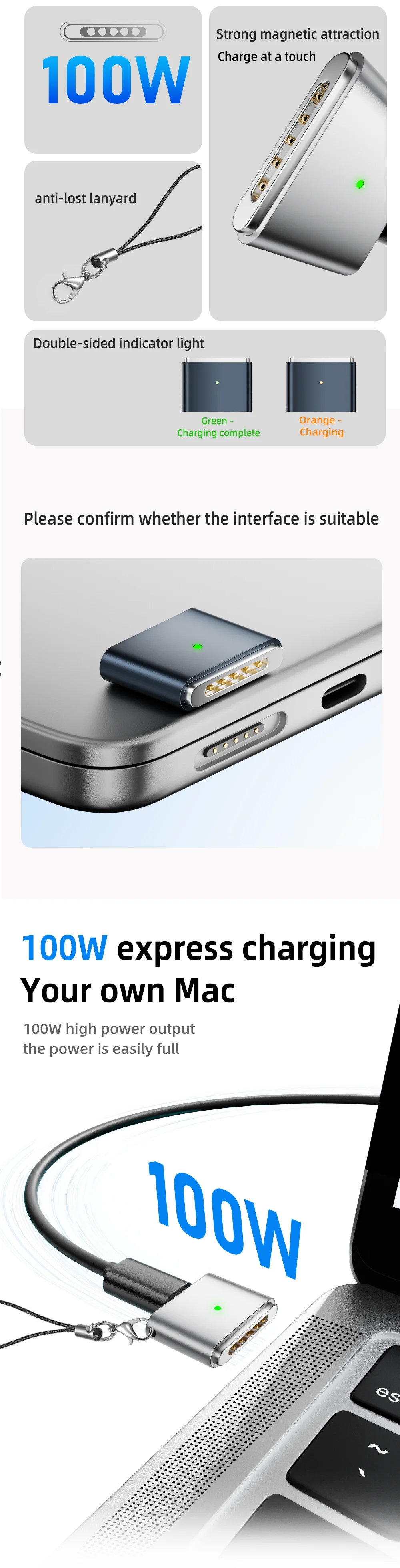 1. The adapter needs to be equipped with a PD100W-45W protocol charging head and a double-head Type-C data cable to charge the Apple notebook.