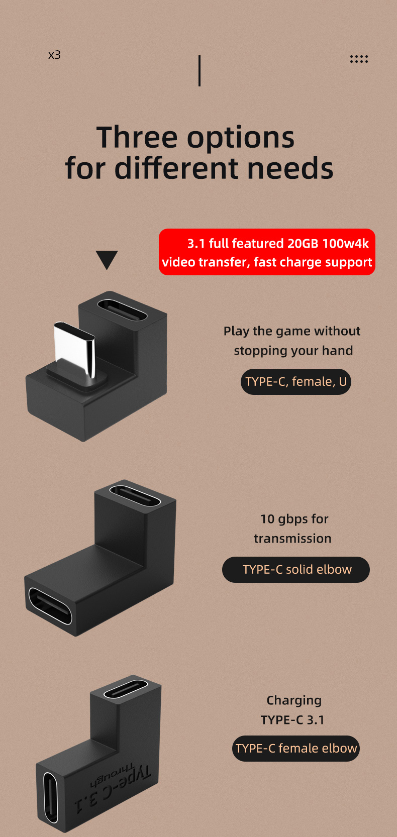 1 x USB-C Female to USB-C Female Vertical Type Adapter