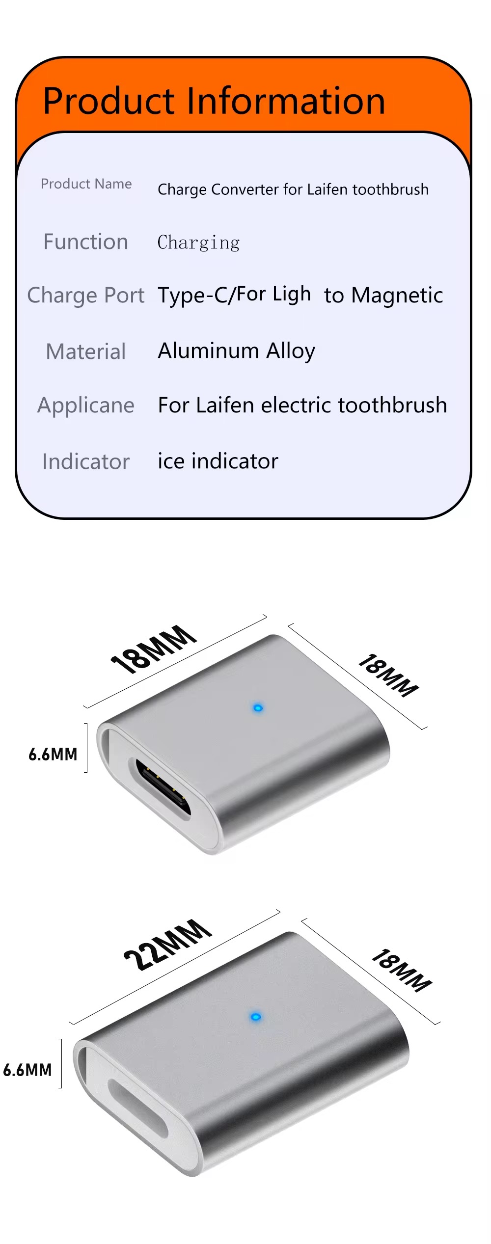 The shell is made of aluminum alloy material, durable to use