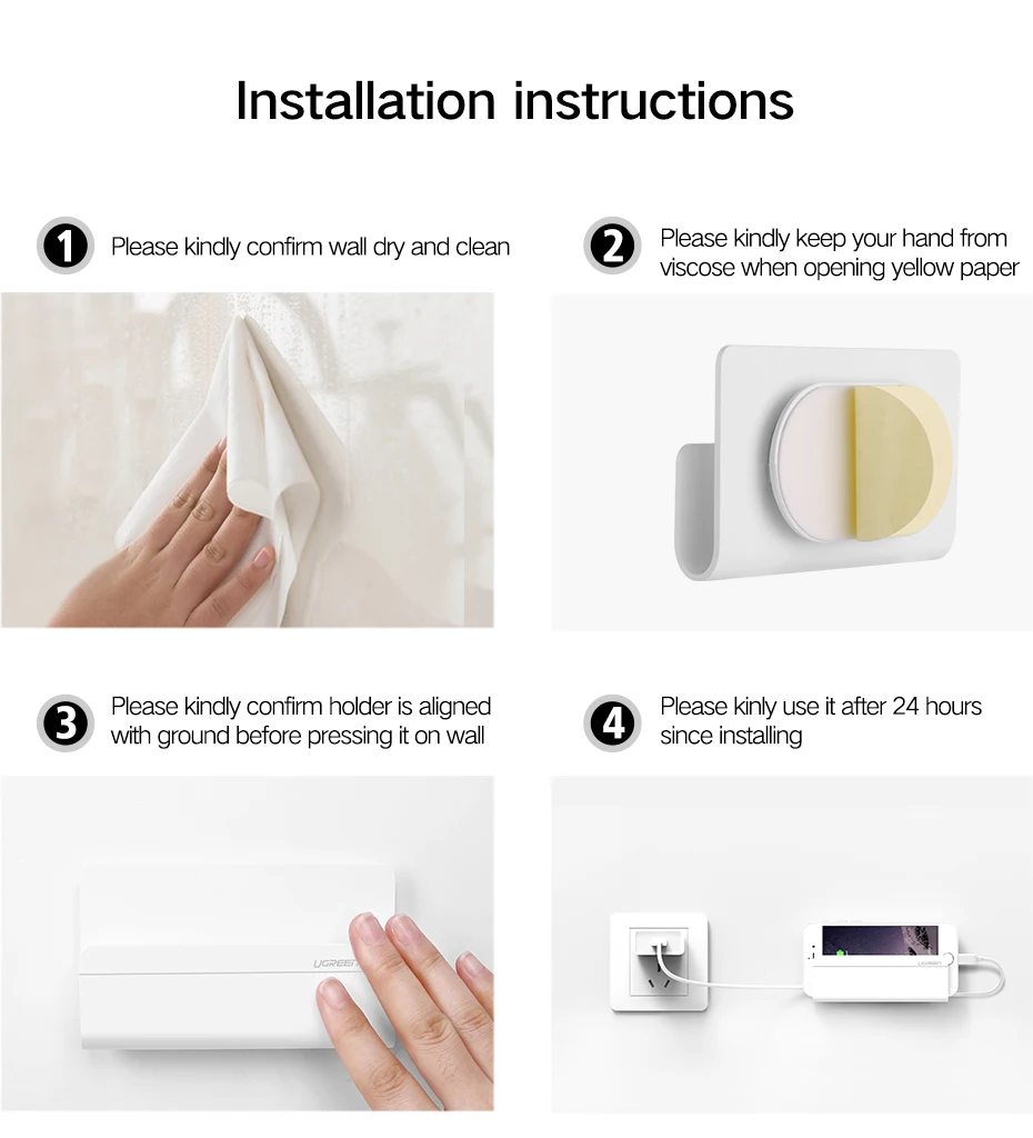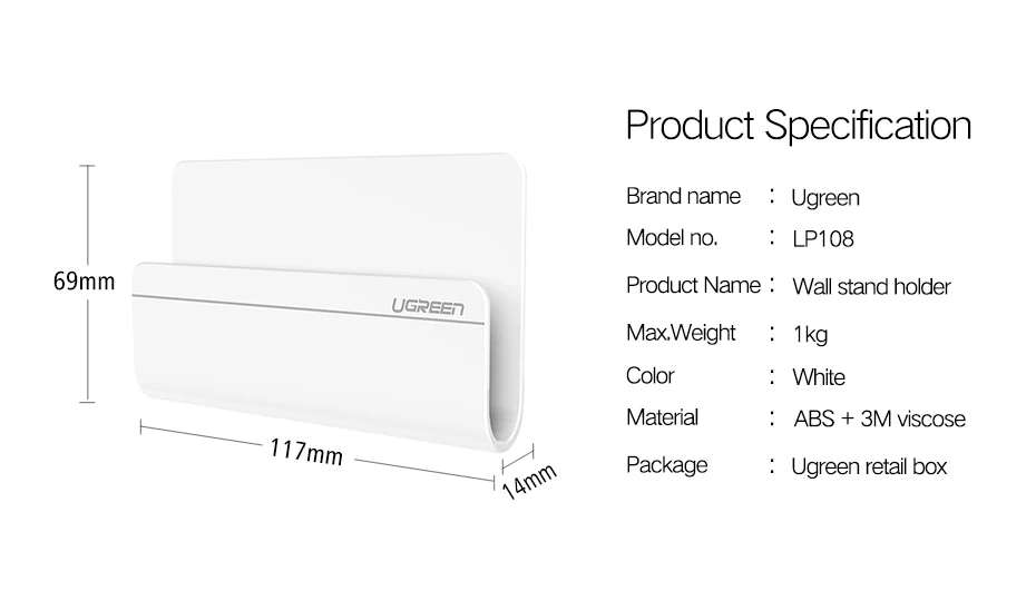 Ugreen LP108 Wall Mount Phone Holder with Adhesive Tape, Charging Holder Compatible with iPhone, Smartphone and Mini Tablet
