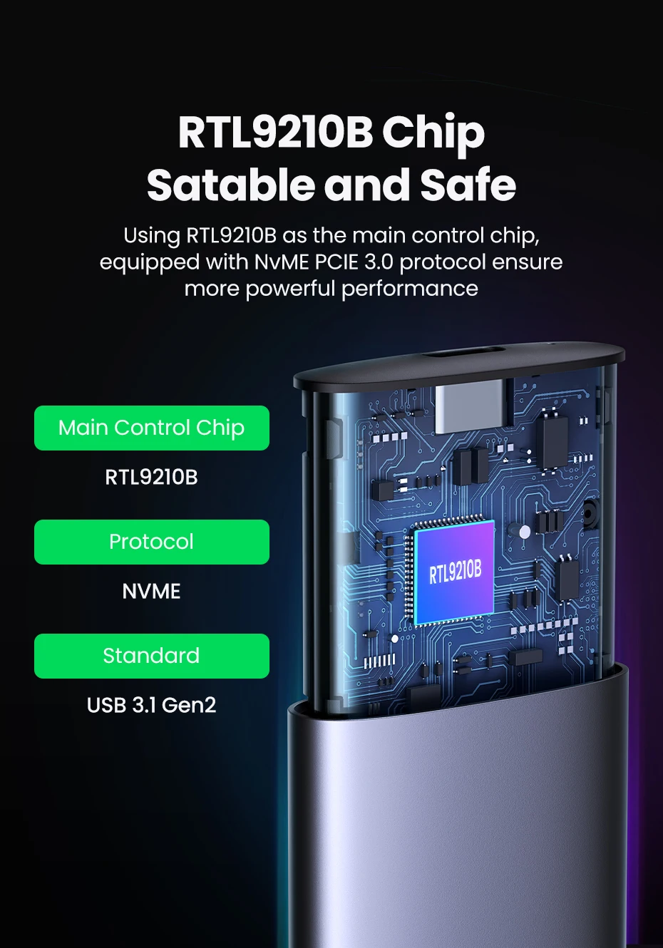 Using RTL9210B as the main control chip, equipped with NvME PCIE 3.0 protocol ensure more powerful performanceRTL9210B Chip, Satable and Safe
