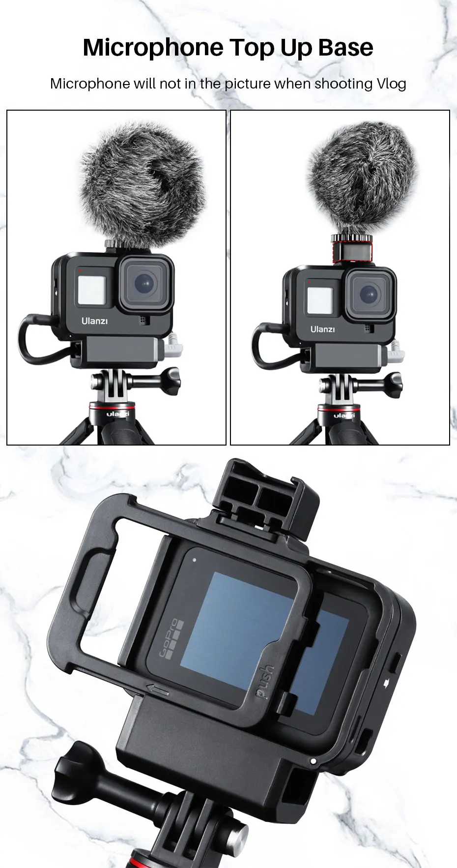 Microphone top up base:Microphone will not in the picture when shooting vlog.