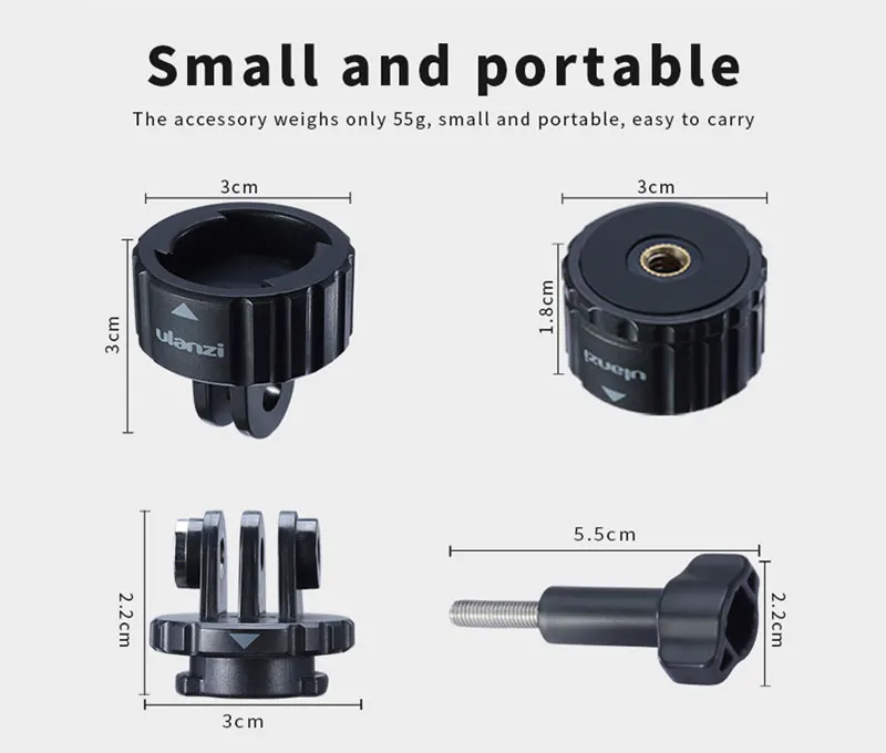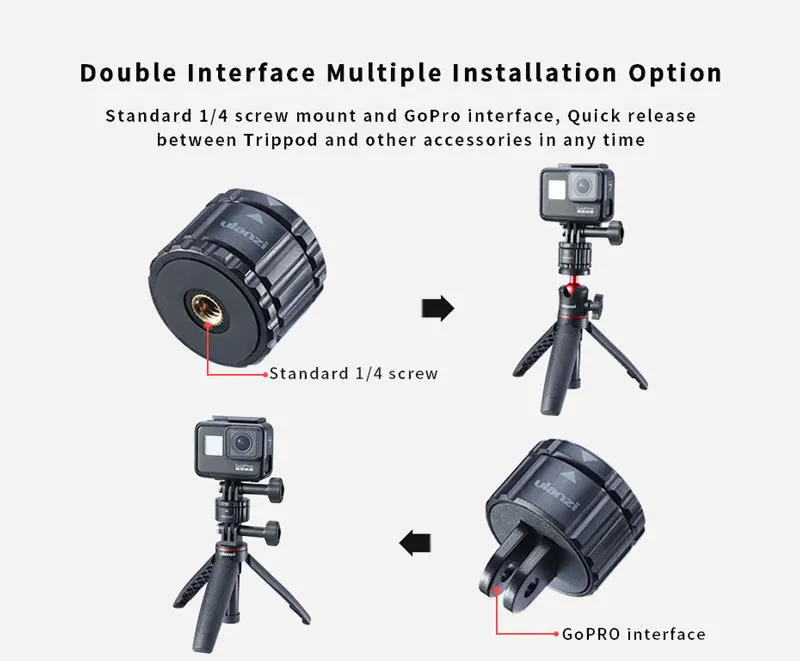 -Double interface, two bases with standard 1/4 screw port and GOPRO interface