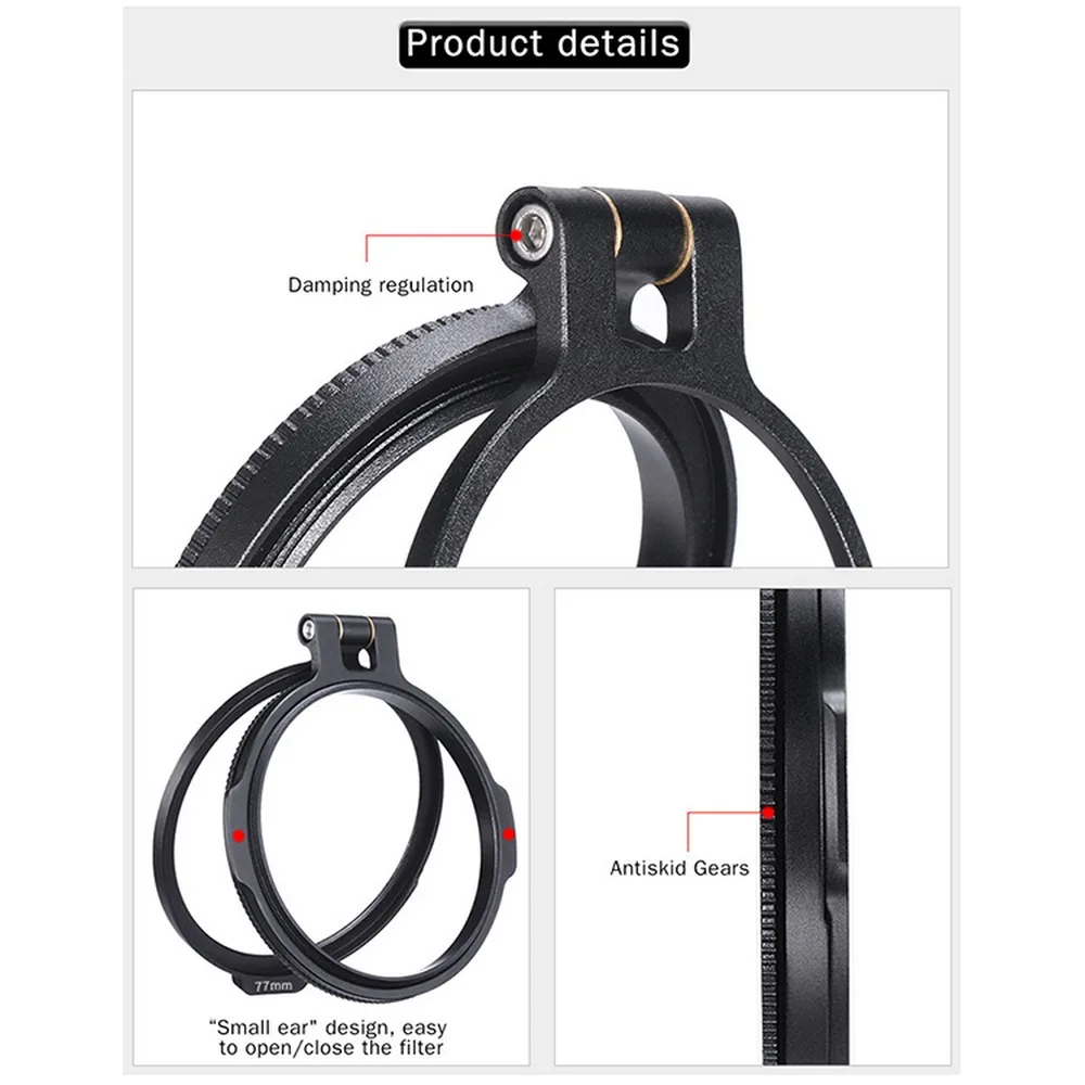 Fixed in front of the lens, when the filter is not needed, open the filter cover directly. When the light is too strong and the ND filter is needed, it can be used directly. The indoor and outdoor light changes are very practical.