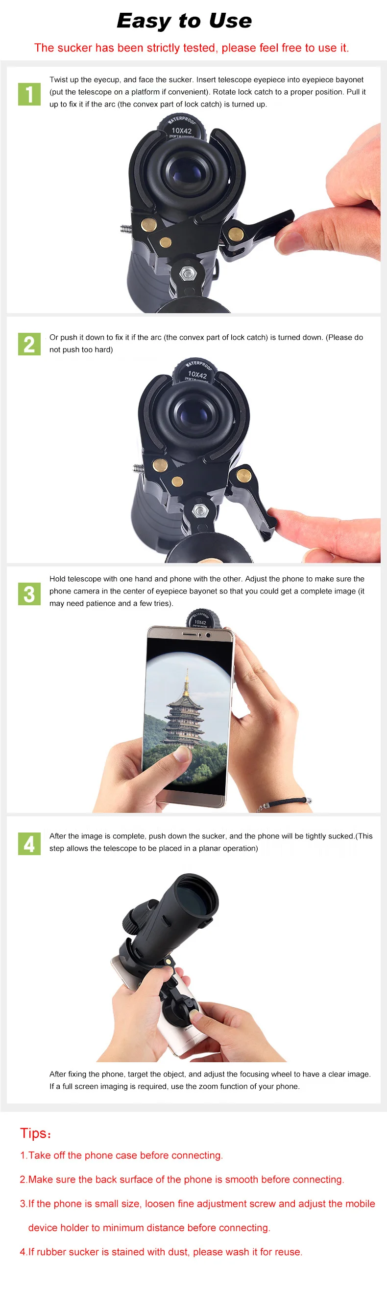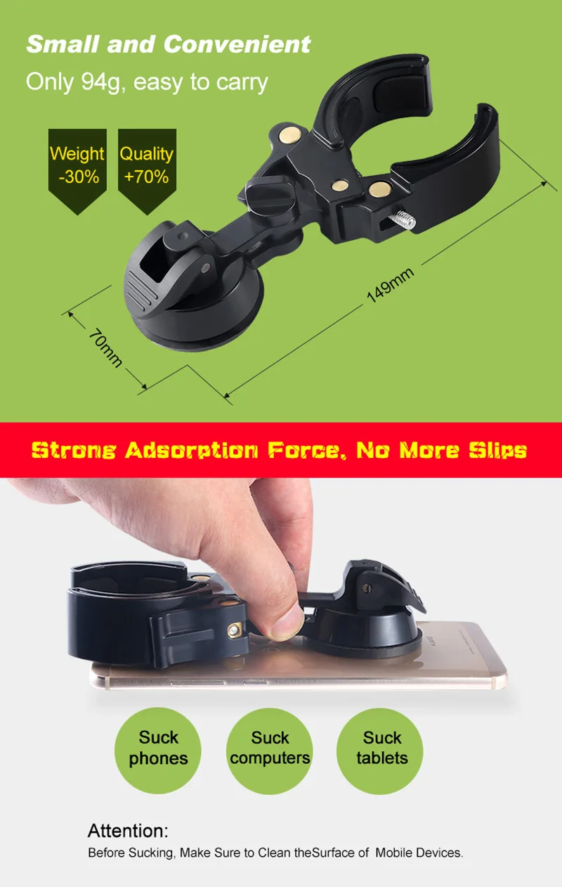 Rubber sucker connection: connected to mobile device with camera or video function, such as smartphones, tablet computers
