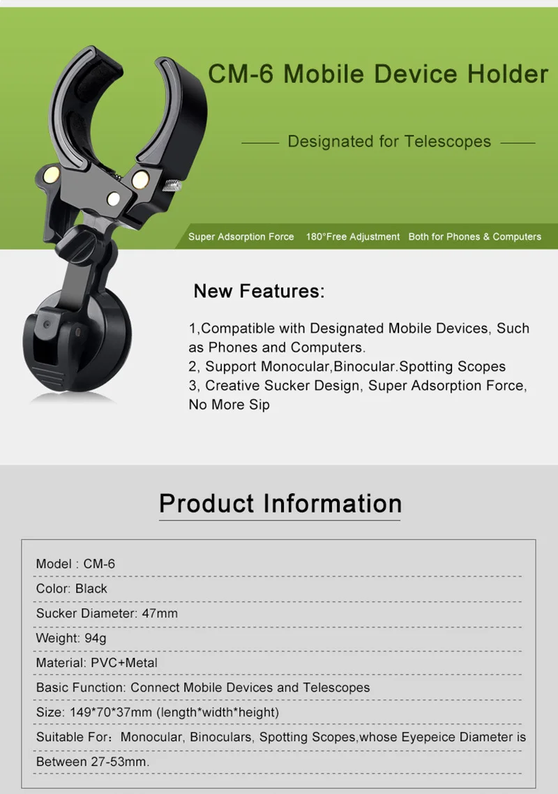 eye bayonet connection: compatible with telescope whose eye outer diameter between 27mm-53mm (1.06-2.09)