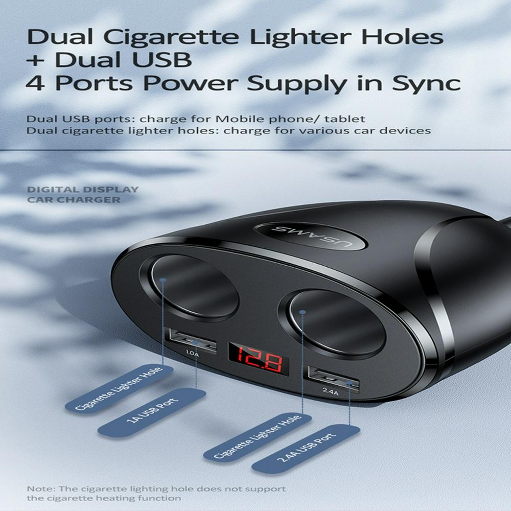 Dual-slot smoke hole + dual USB four-port power supply at the same time:Dual USB interface can charge mobile phones / tablets,dual-slot smoke hole can supply power for many vehicle-mounted devices.