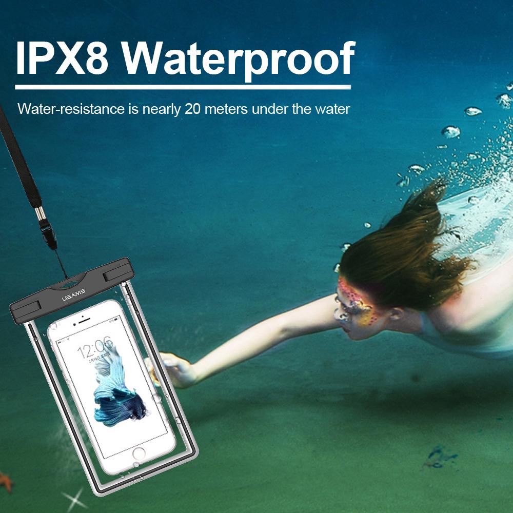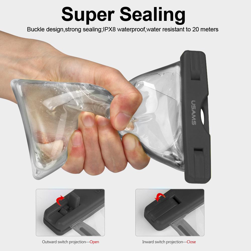 After used in the water, if need to take out the phone or the other, please let the seal down, so as to prevent the residual water into the waterproof bag.