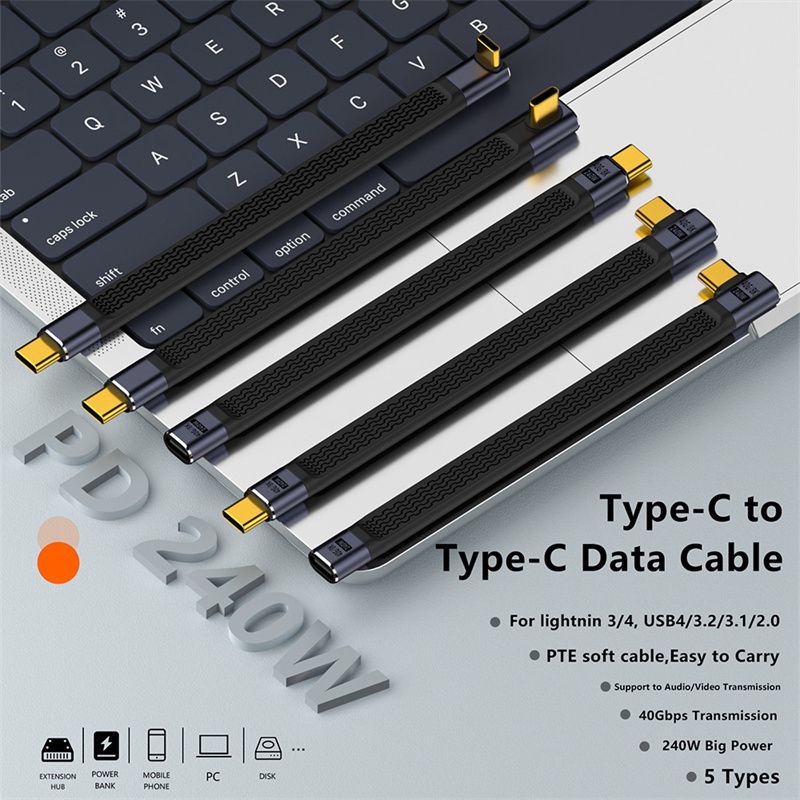 USB 4.0 Type-C to Type-C male to female FPC 240W 40Gbps Charge Data Cable Adapter