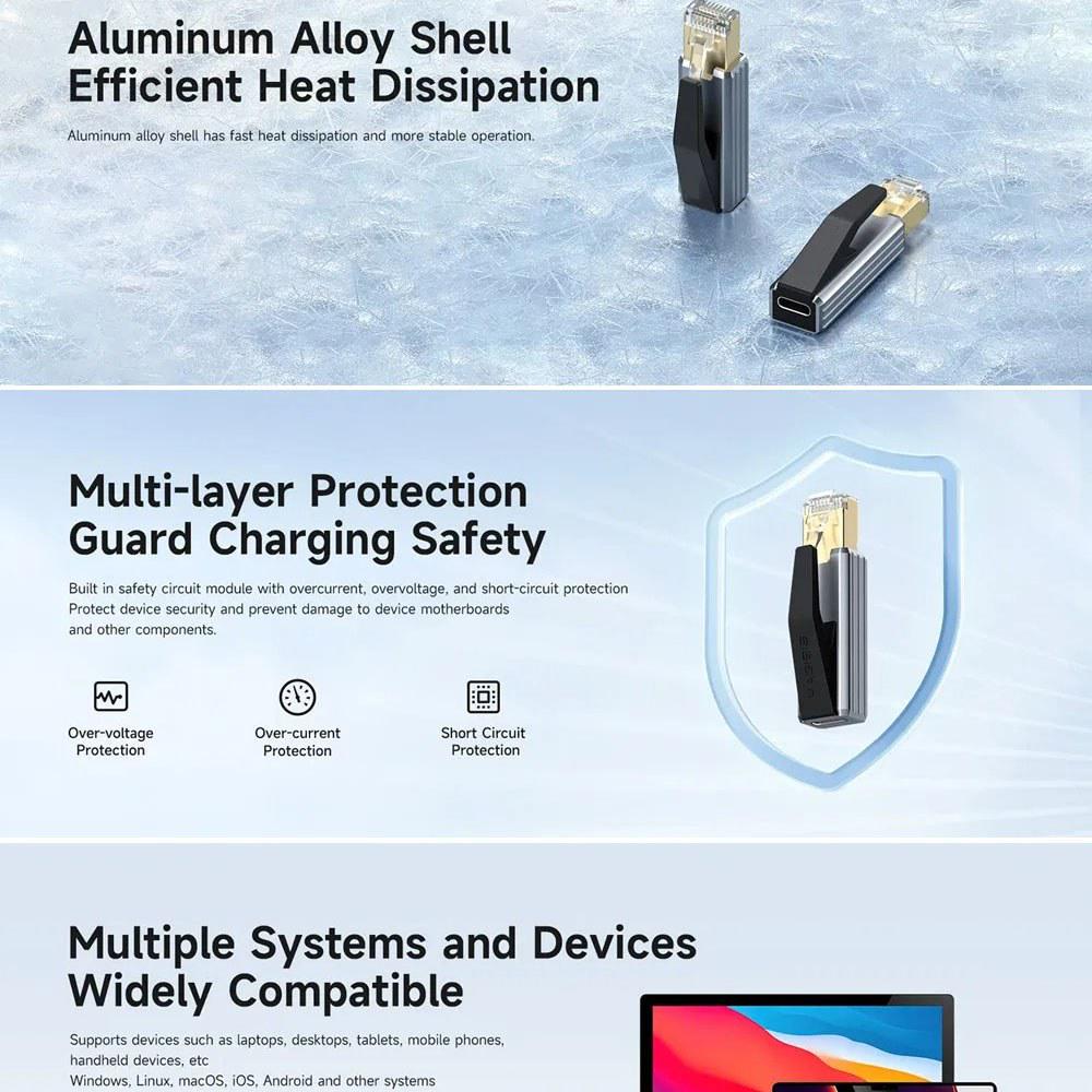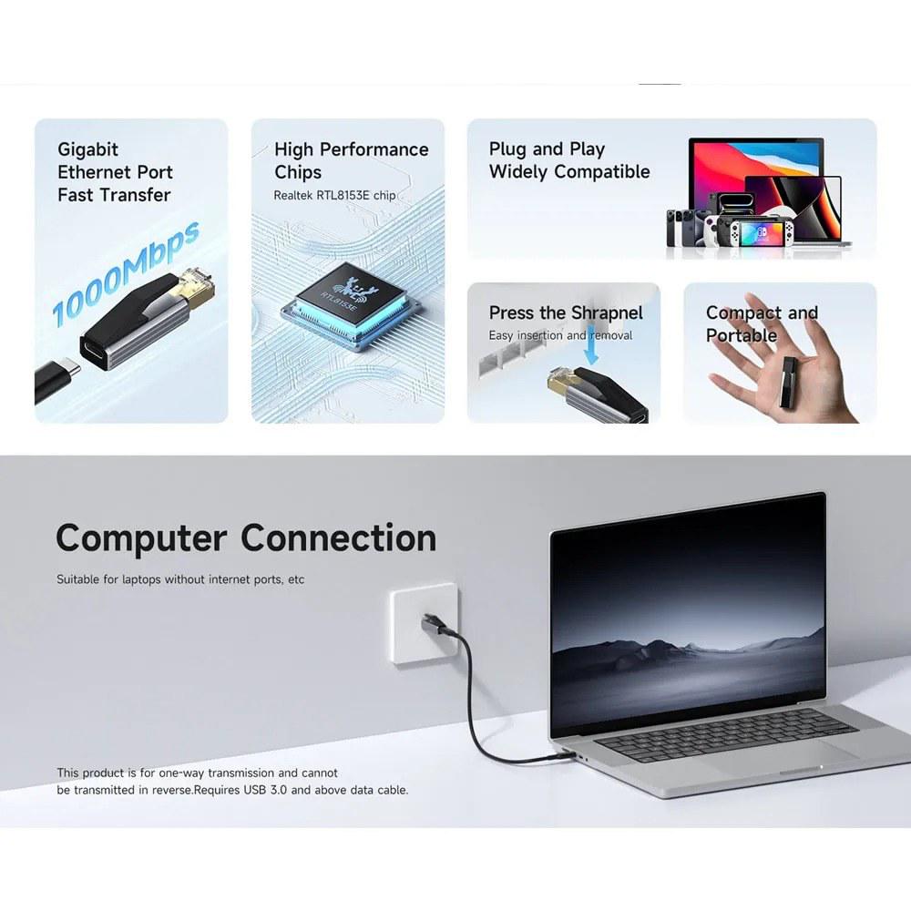 USB C Female to RJ45 Male Design: Easily bridge USB-C devices to wired networks via a standard RJ45 Ethernet port, ensuring reliable connectivity where Wi-Fi is weak or unstable.