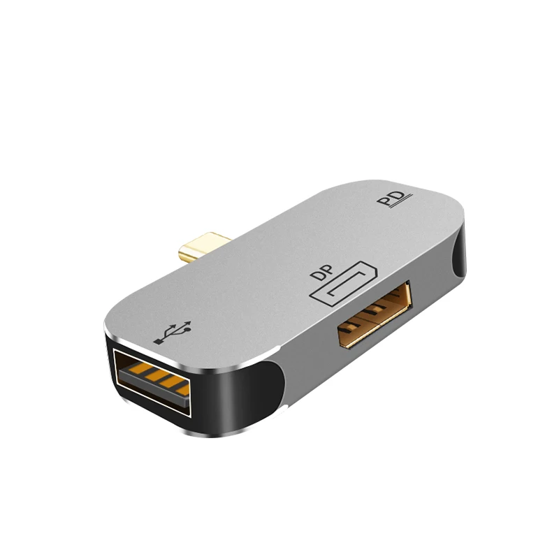 1: 1* DP Female port,1*USB C PD Charging Port,1*USB 2.0 A Female data transmission Port;