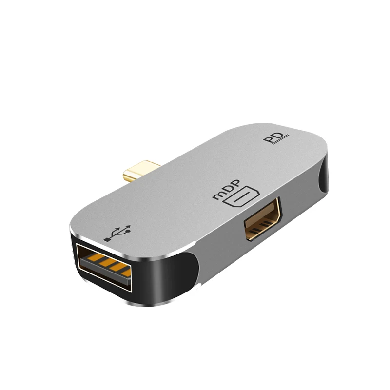 1: 1* Mini DP Female port,1*USB C PD Charging Port,1*USB 2.0 A Female data transmission Port;